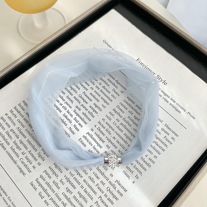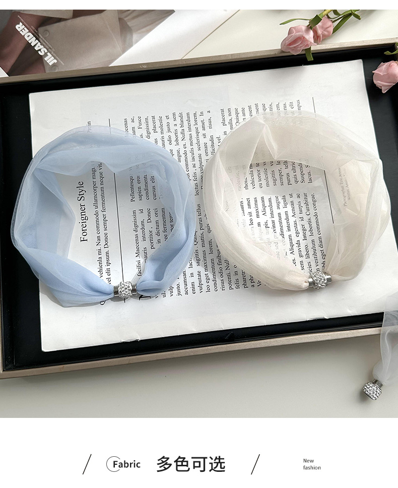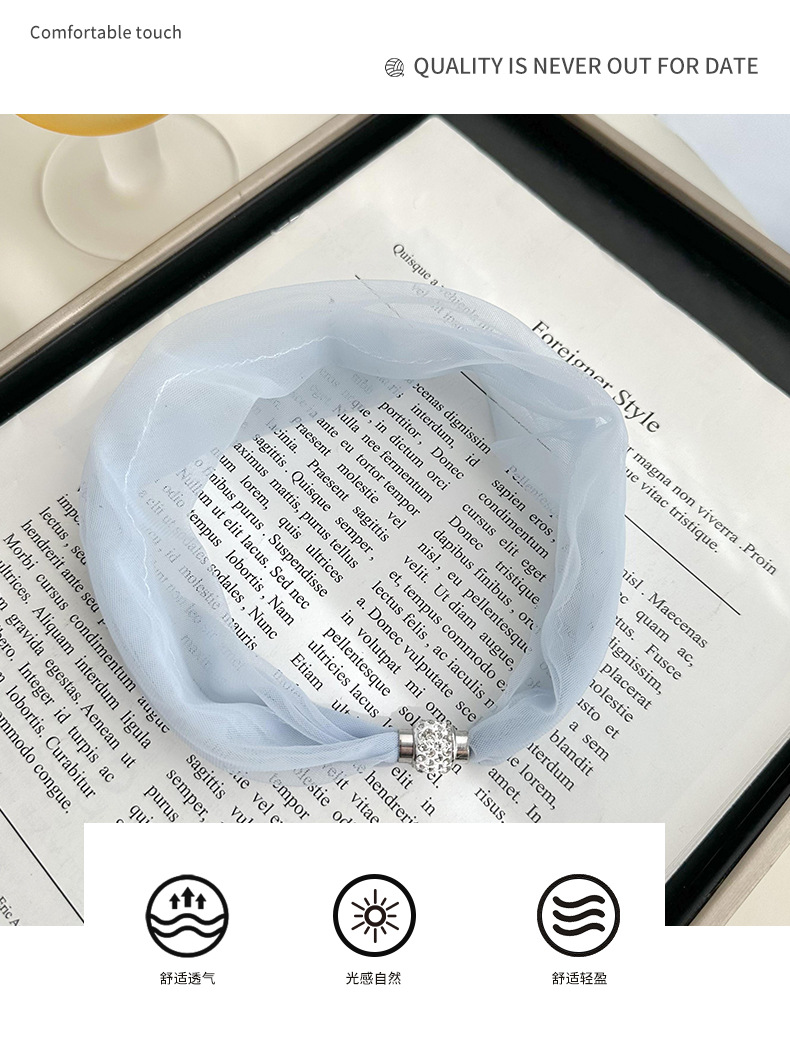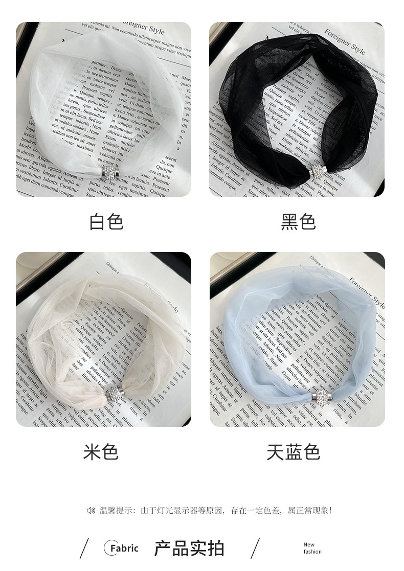 레이스 스카프 여성의 여름 자기 버클 간단한 진주 펜던트 목 보호 작은 스카프 메쉬 통기성 예술적 장식 스카프스토어 가기