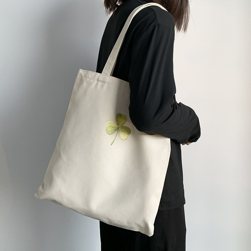 幸运草帆布包男女大容量补习袋中小学生手提书包袋单肩布包包