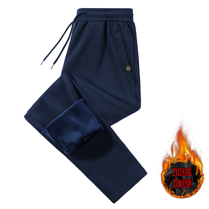 가을용 순면 플리스 남성 스트레이트 팬츠 지퍼 포켓 캐주얼 팬츠 대형 맞춤 남성 팬츠 플리스 두꺼운 팬츠