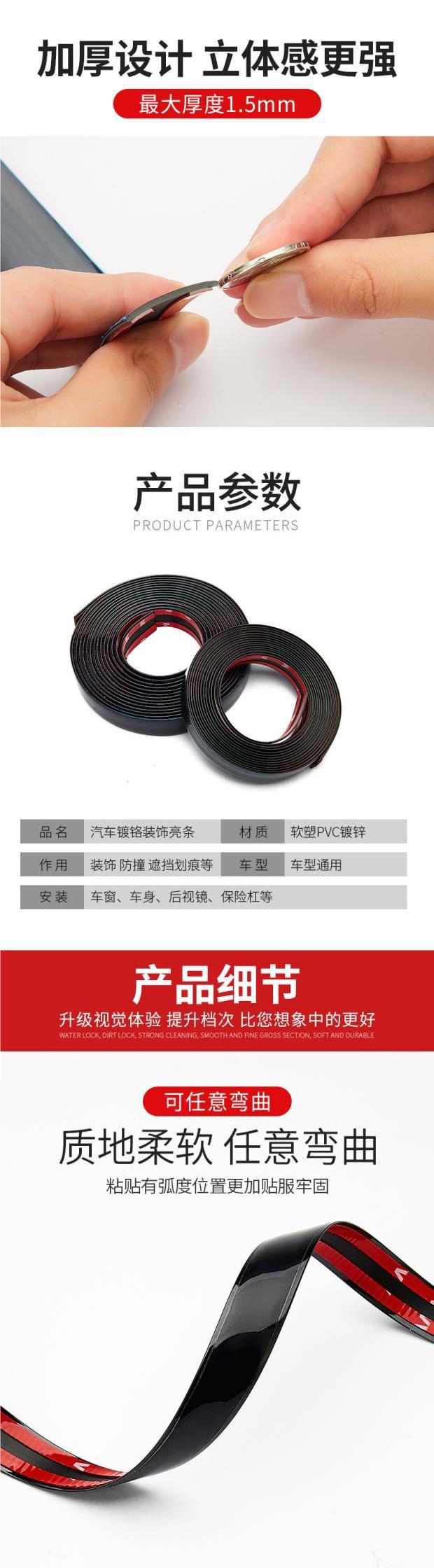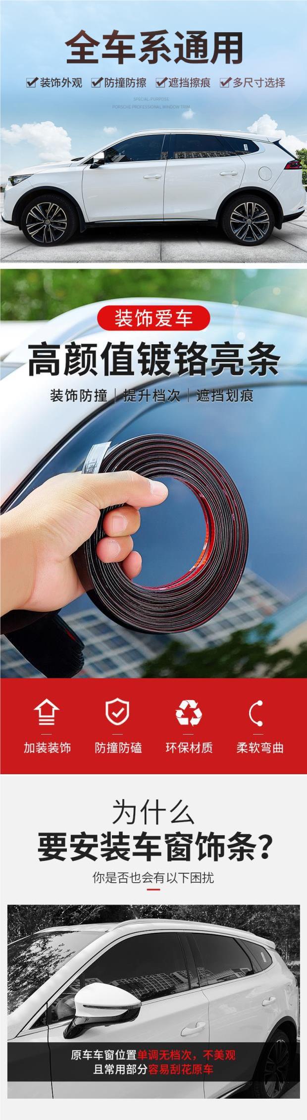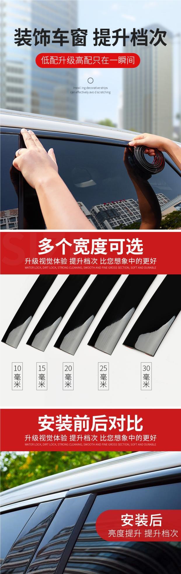 검은 자동차 창 밝은 스트립 일반 모터 장식 스트립 크롬 도금 수정 된 검은 색 사무라이 밝은 검은 색 거울 상단 창 프레임 스티커