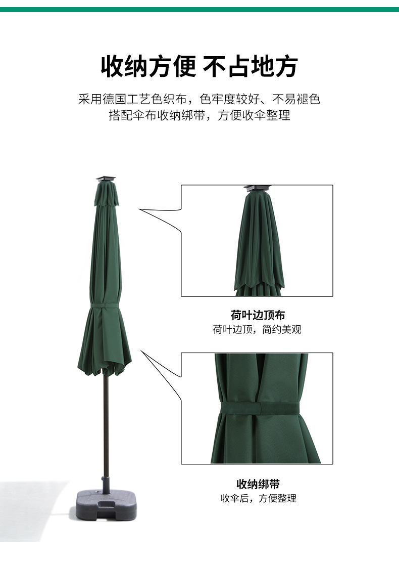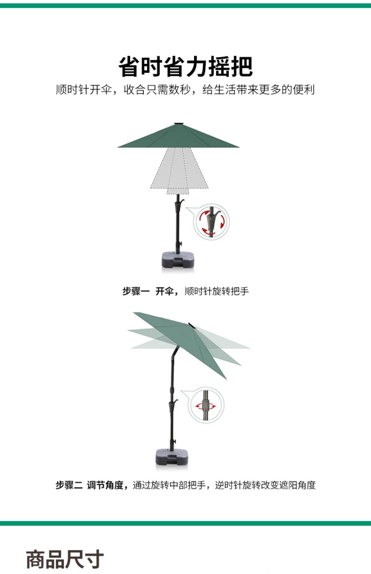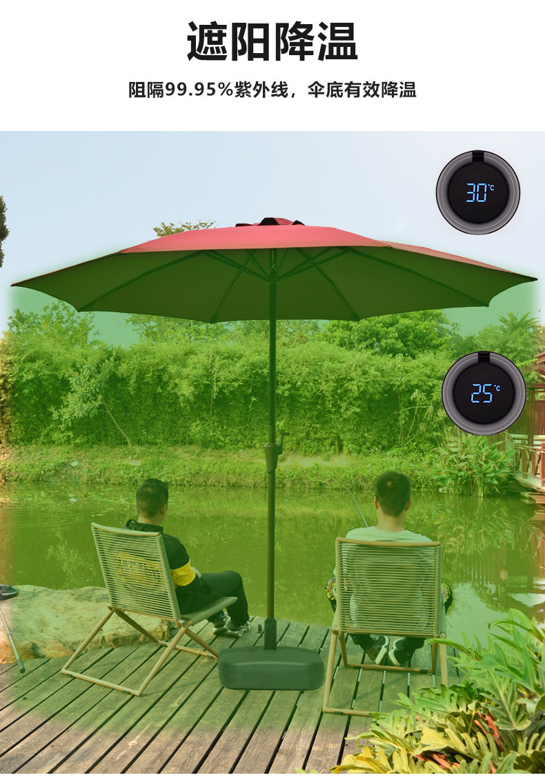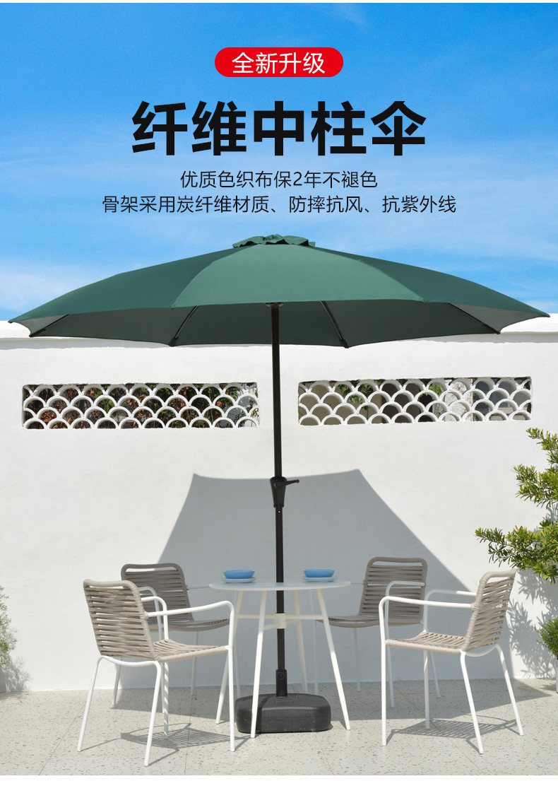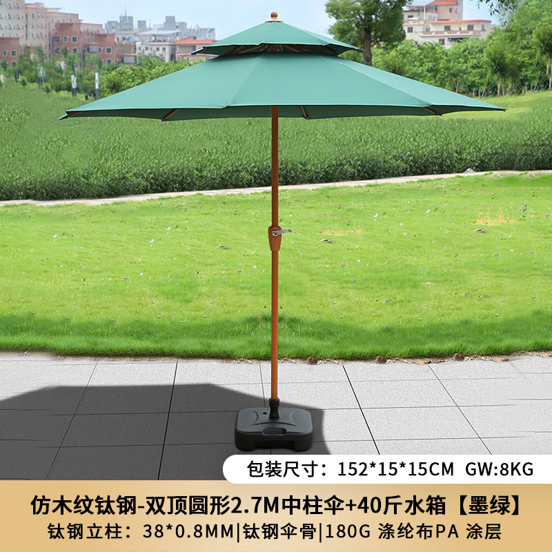 • 모조 우드 그레인 티타늄 스틸-더블 탑-40kg 물 탱크-라운드 2.7M-중간 기둥 우산 [다크 그린]