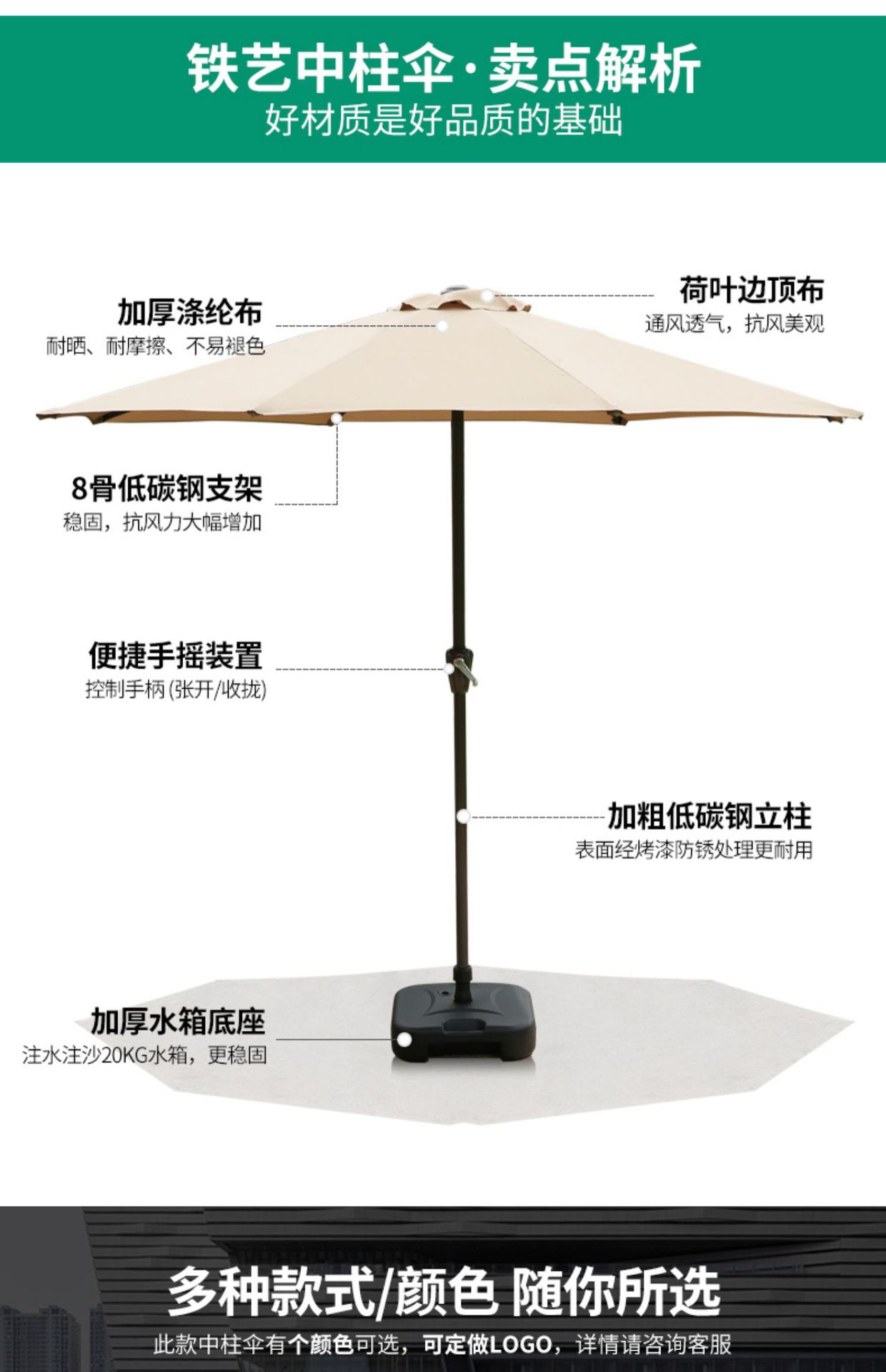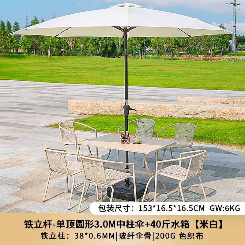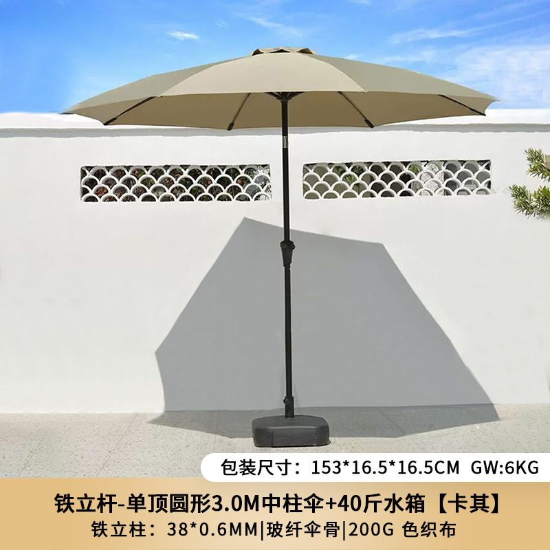 • 철 극-단일 최고 섬유 우산 뼈-40kg 물 탱크-라운드 3.0M 중심 기둥 우산 [쌀 화이트]]
