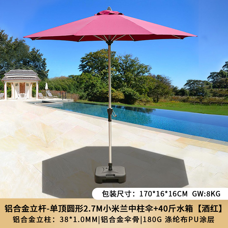 • 알루미늄 합금 극-싱글 탑-40kg 물 탱크 라운드 2.7M-작은 밀라노 기둥 우산 [버건디]
