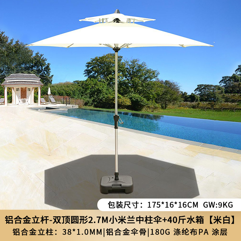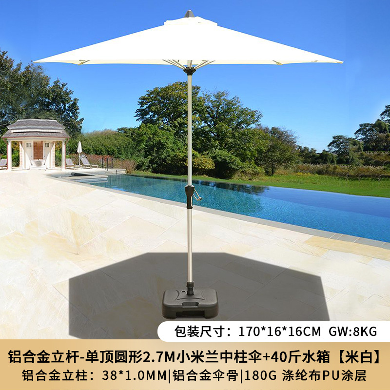 • 알루미늄 합금 폴-싱글 탑-40kg 물 탱크 라운드 2.7M-작은 밀라노 중간 기둥 우산 [쌀 화이트]]