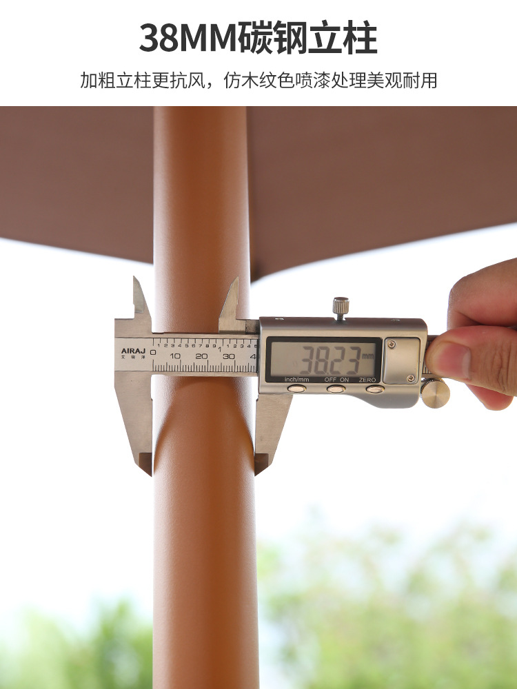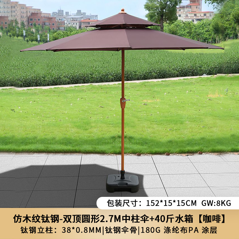 • 모조 우드 그레인 티타늄 스틸-더블 탑-40kg 물 탱크-라운드 2.7M-중간 기둥 우산 [커피]