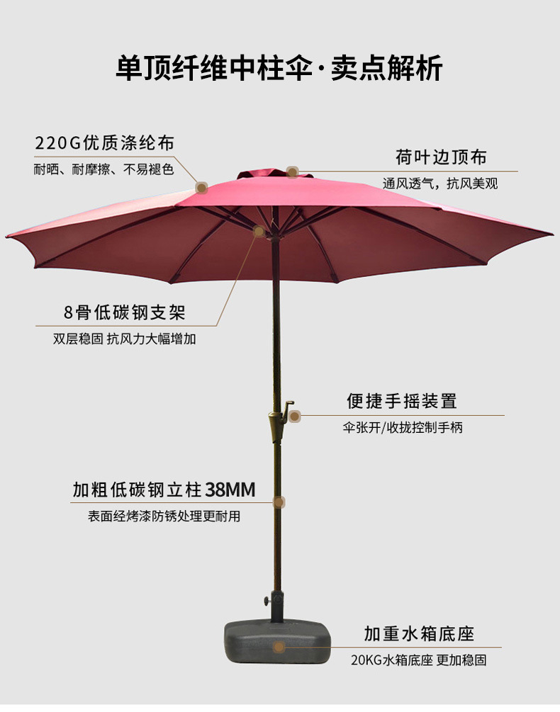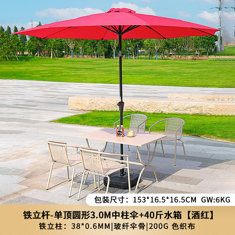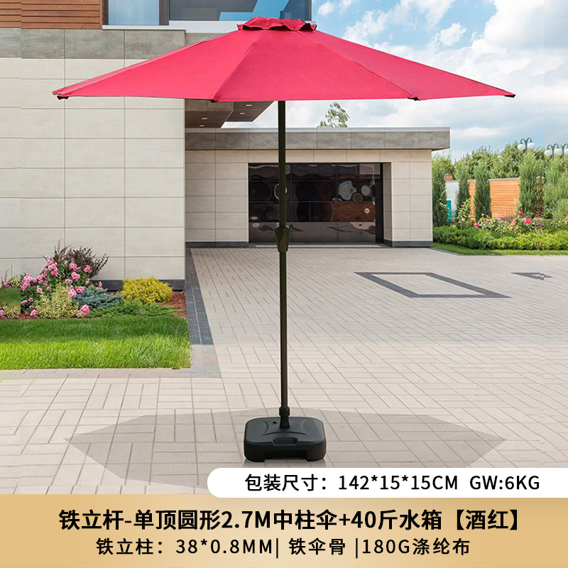 • 철 극-단일 최고 섬유 우산 뼈-40kg 물 탱크-라운드 3.0M-중앙 기둥 우산 [버건디]