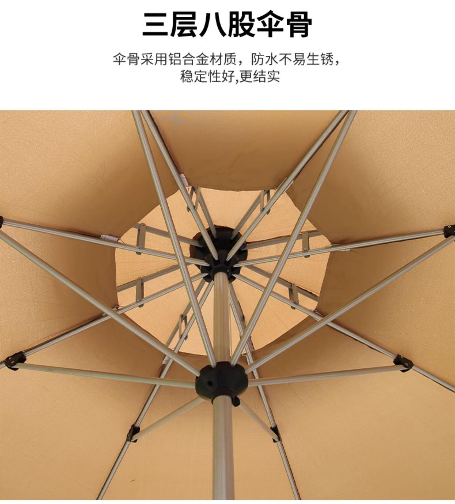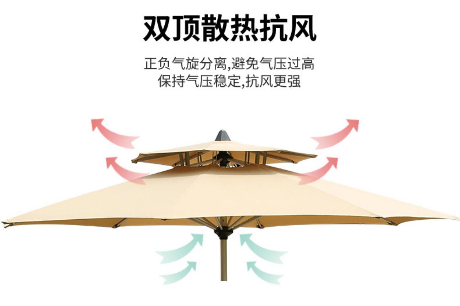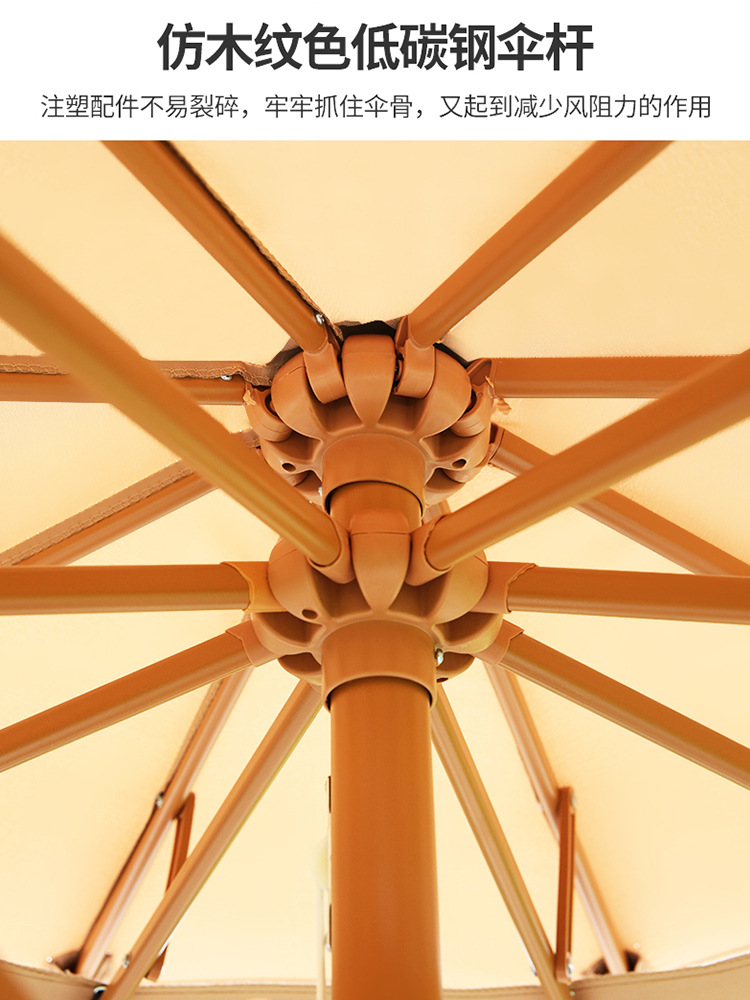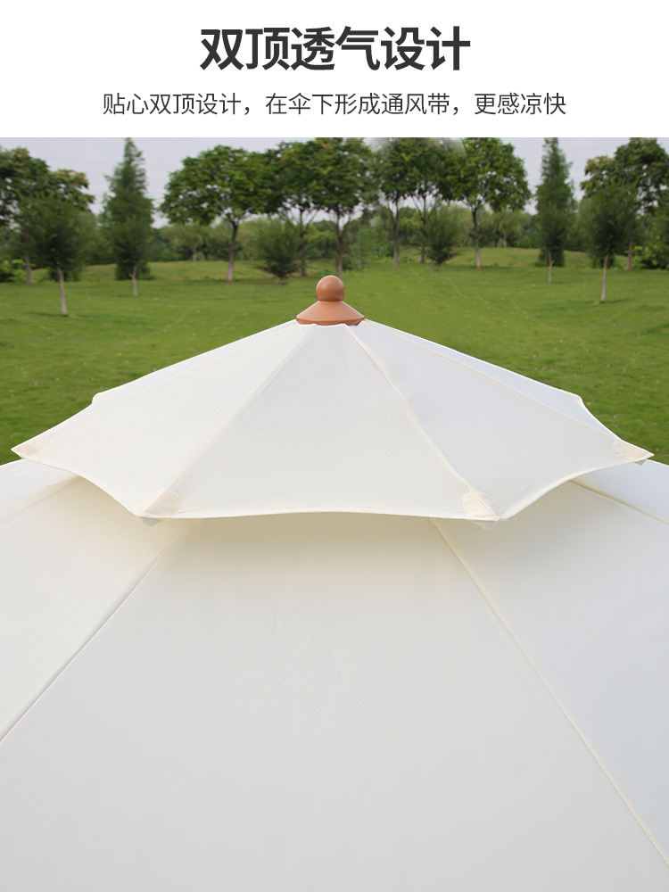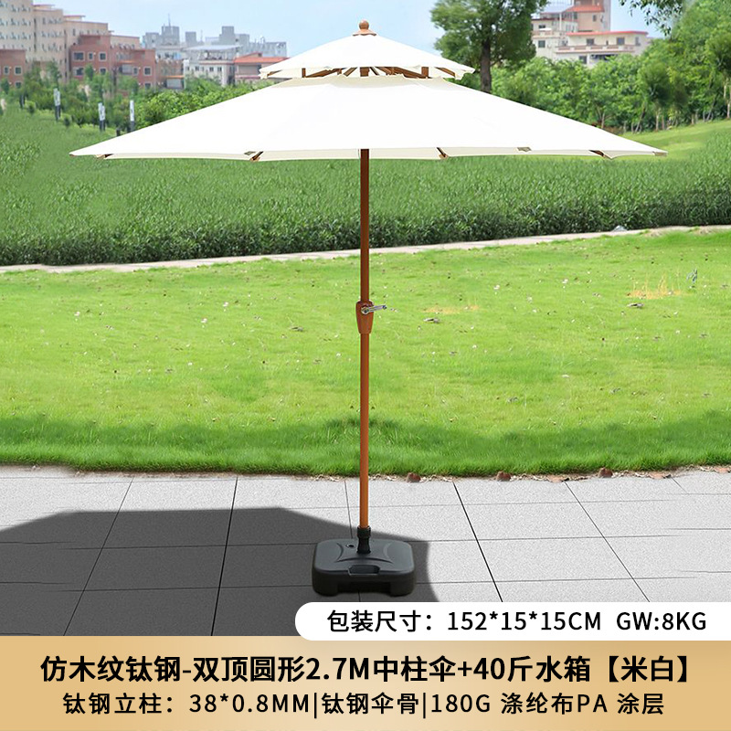 • 모조 우드 그레인 티타늄 스틸-더블 탑-40kg 물 탱크-라운드 2.7M-중간 기둥 우산 [쌀 화이트]]