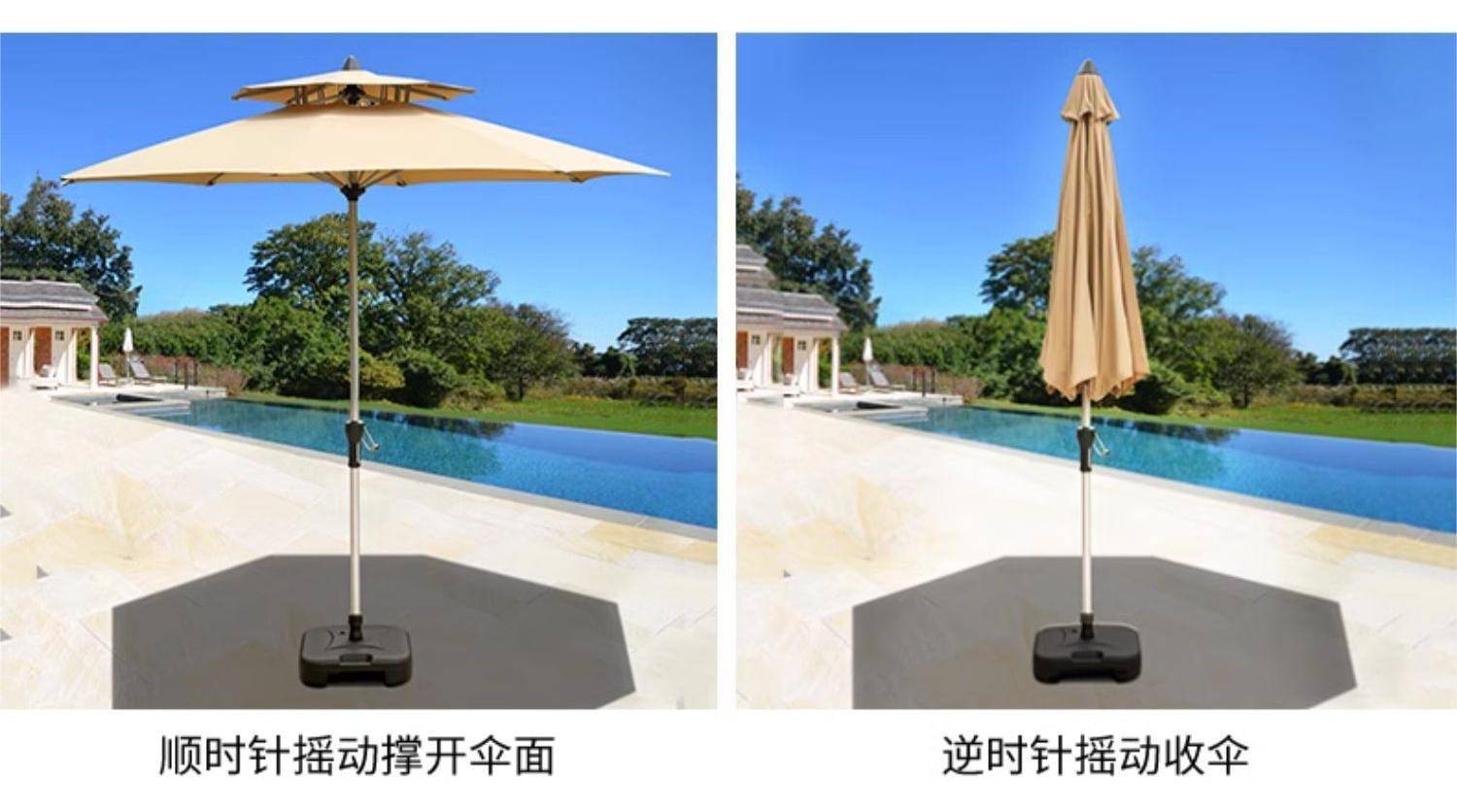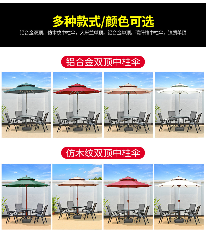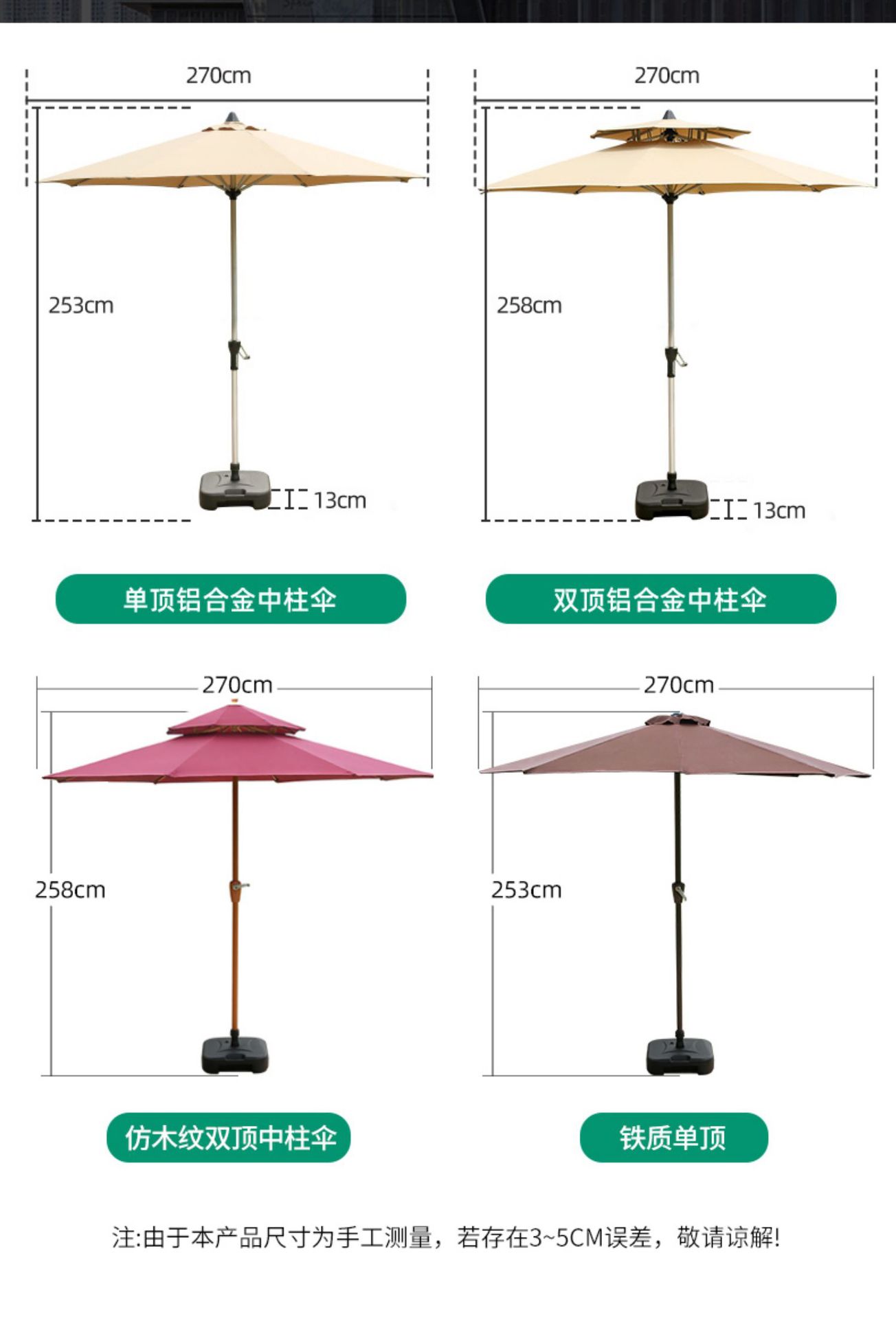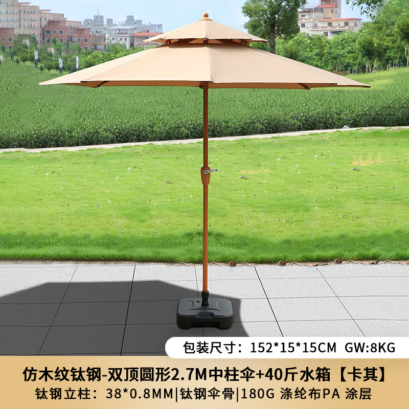 • 모조 우드 그레인 티타늄 스틸-더블 탑-40kg 물 탱크-라운드 2.7M-중간 기둥 우산 [카지]]