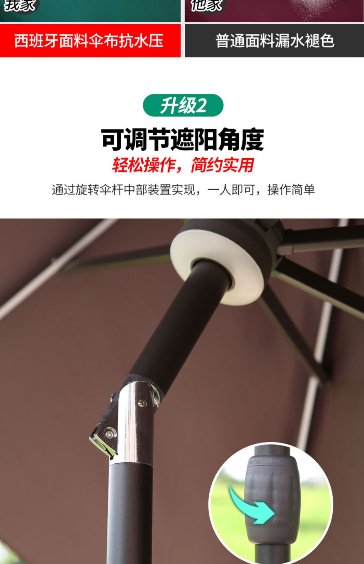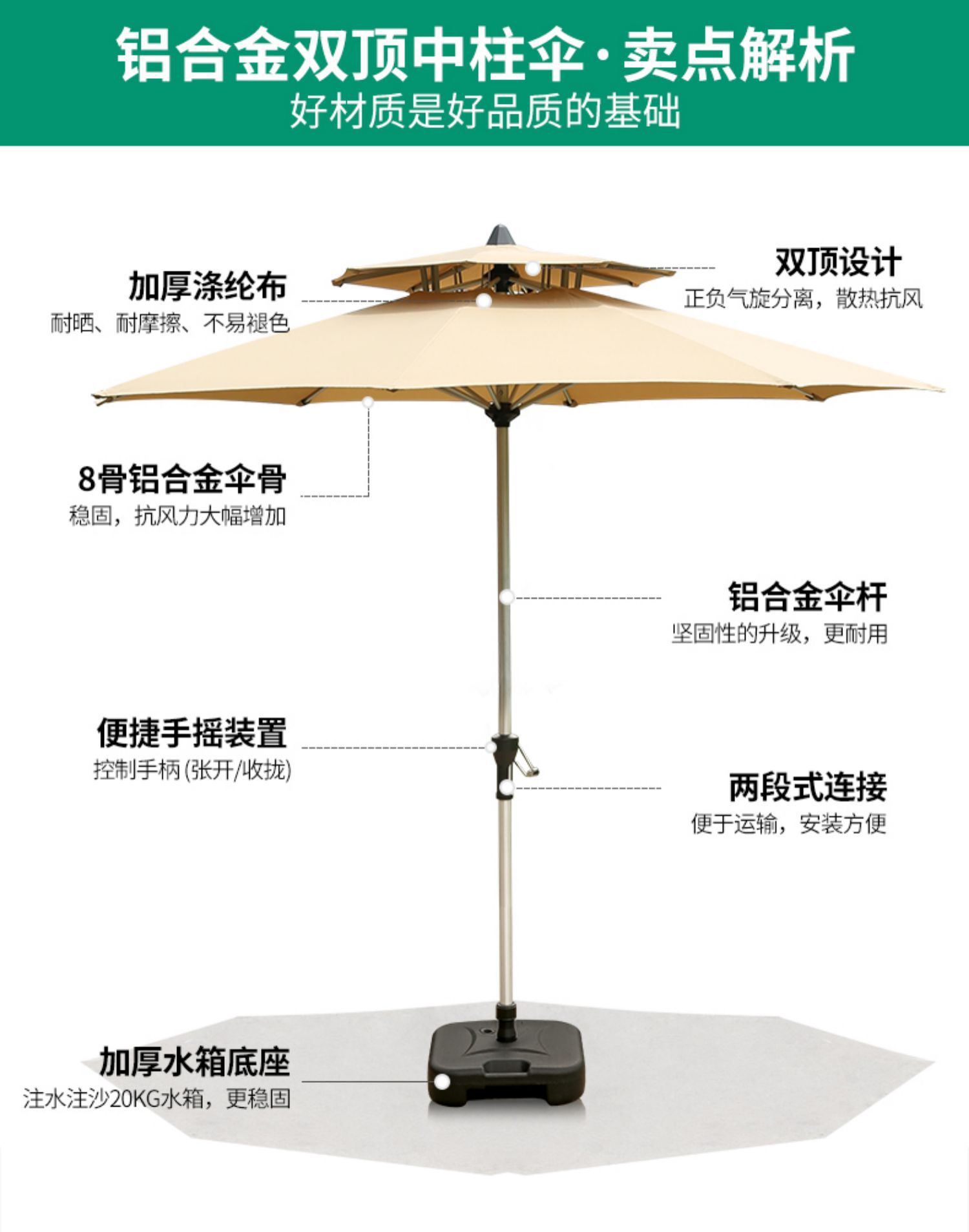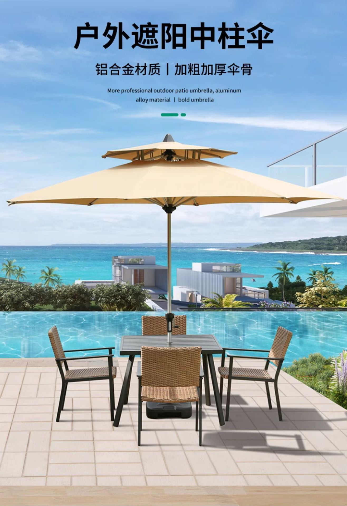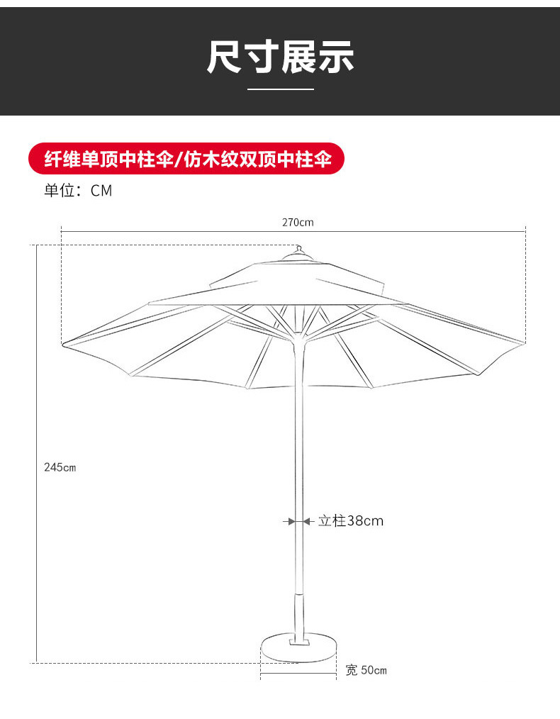 • 모조 우드 그레인 티타늄 스틸-더블 탑-40kg 물 탱크-라운드 2.7M-중간 기둥 우산 [카지]]