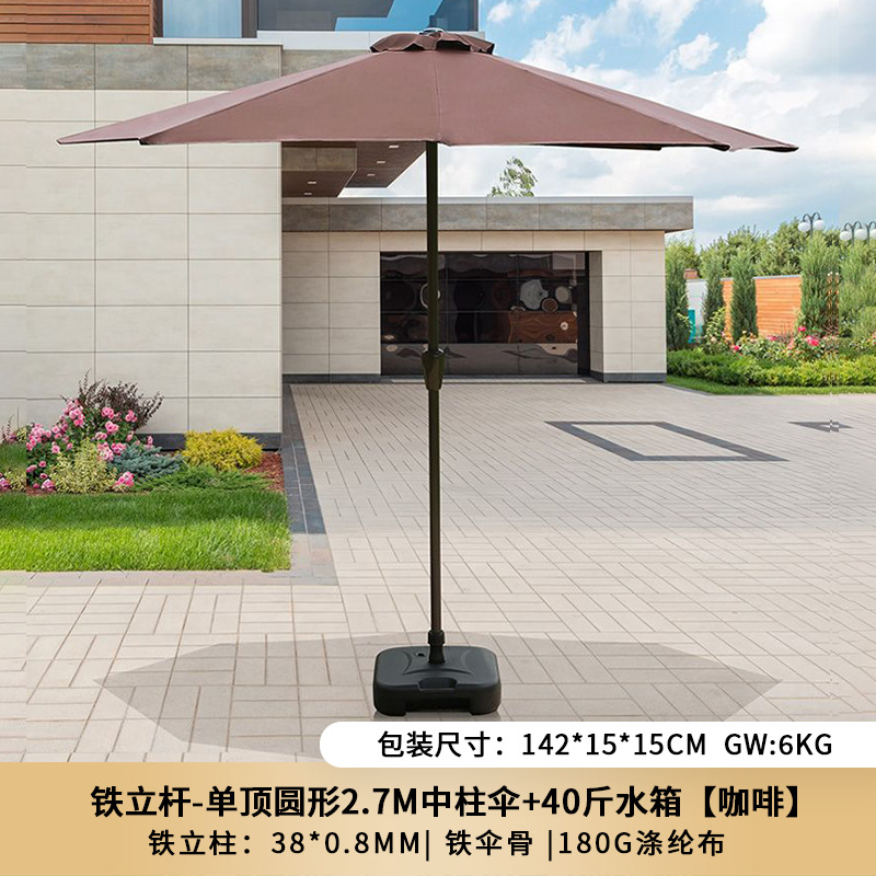 • 아이언 폴-싱글 탑-40kg 물 탱크-라운드 2.7M-중간 기둥 우산 [커피]