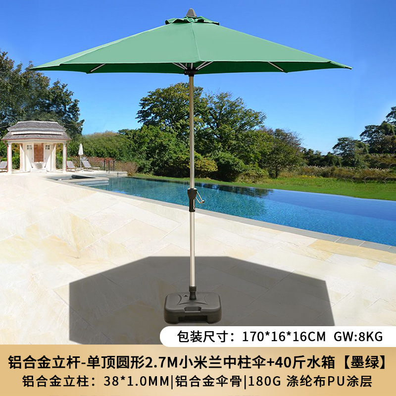 • 알루미늄 합금 극-싱글 탑-40kg 물 탱크 라운드 2.7M-작은 밀라노 기둥 우산 [다크 그린]