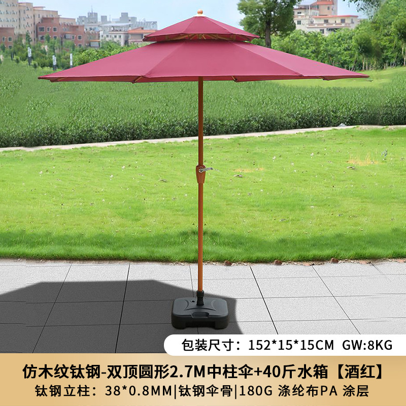 • 모조 우드 그레인 티타늄 스틸-더블 탑-40kg 물 탱크-라운드 2.7M-중앙 기둥 우산 [버건디]