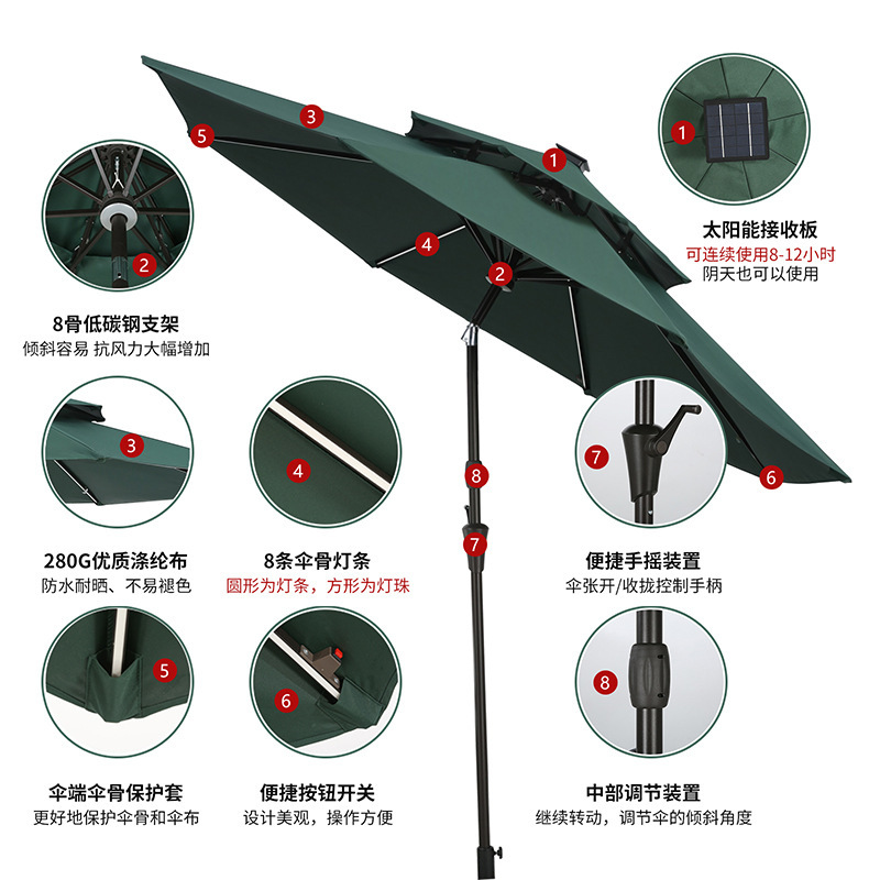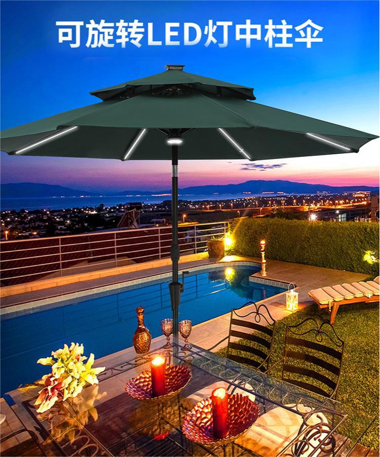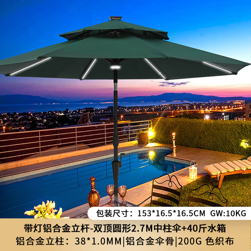• 램프가있는 알루미늄 합금 극-더블 탑-40kg 물 탱크 라운드 2.7M 중심 기둥 우산 [다크 그린]