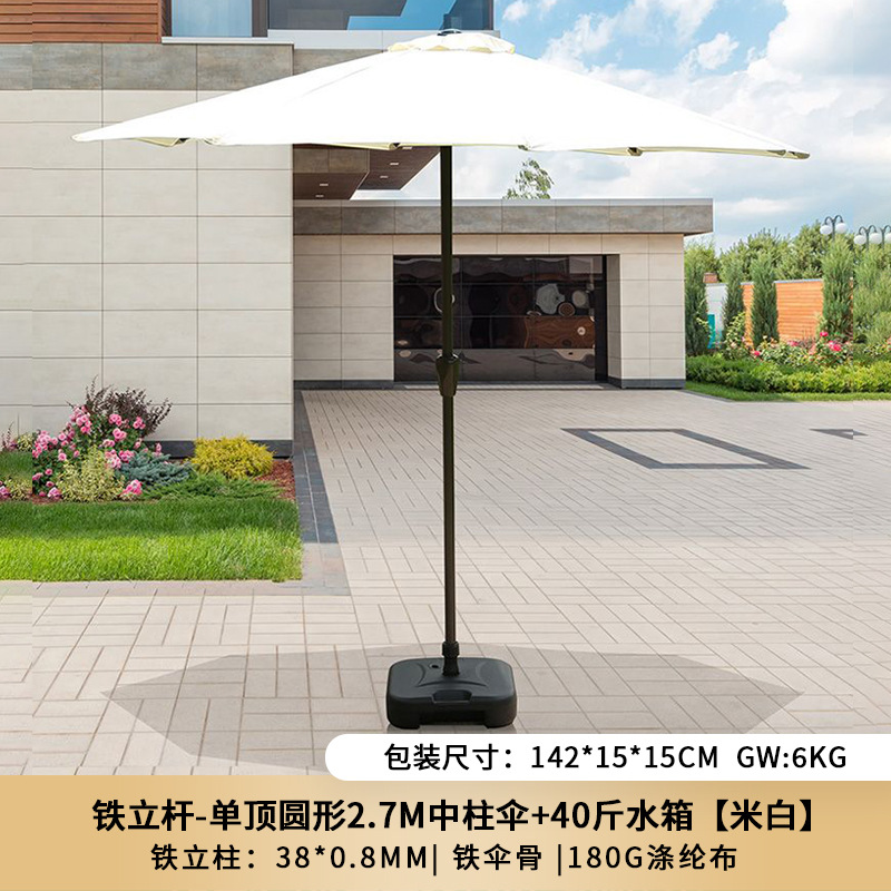 • 아이언 폴-싱글 탑-40kg 물 탱크-라운드 2.7M-중간 기둥 우산 [쌀 화이트]