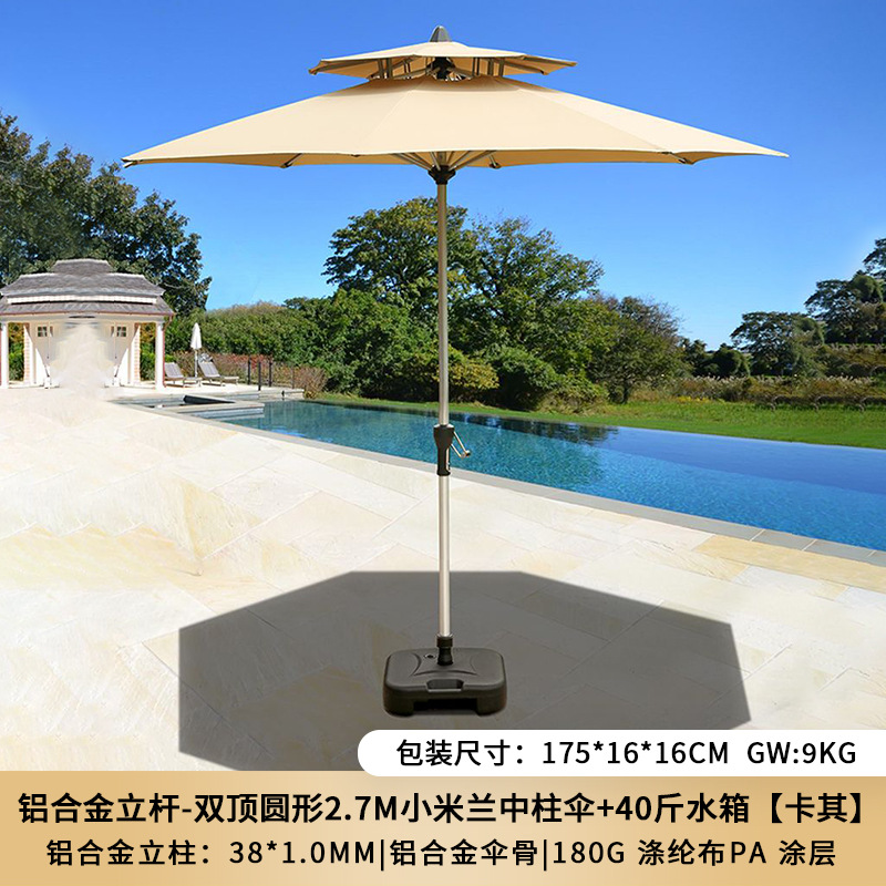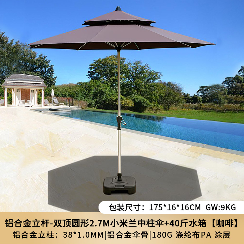 • 알루미늄 합금 극-더블 탑-40kg 물 탱크 라운드 2.7M-작은 밀라노 기둥 우산 [커피]