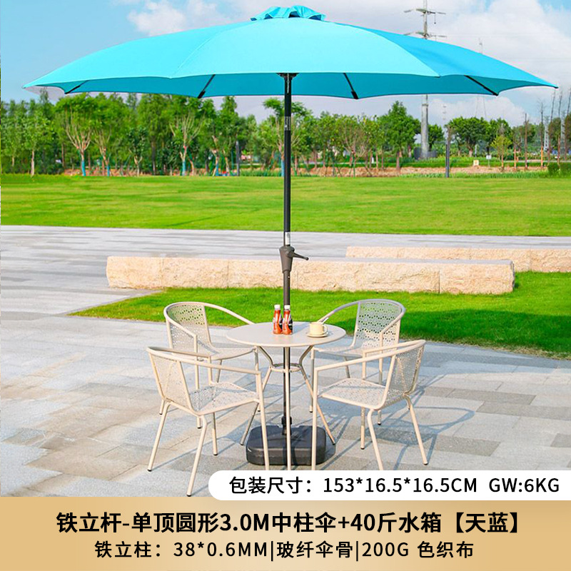 • 철 극-단일 최고 섬유 우산 뼈-40kg 물 탱크-라운드 3.0M 중심 기둥 우산 [하늘색]