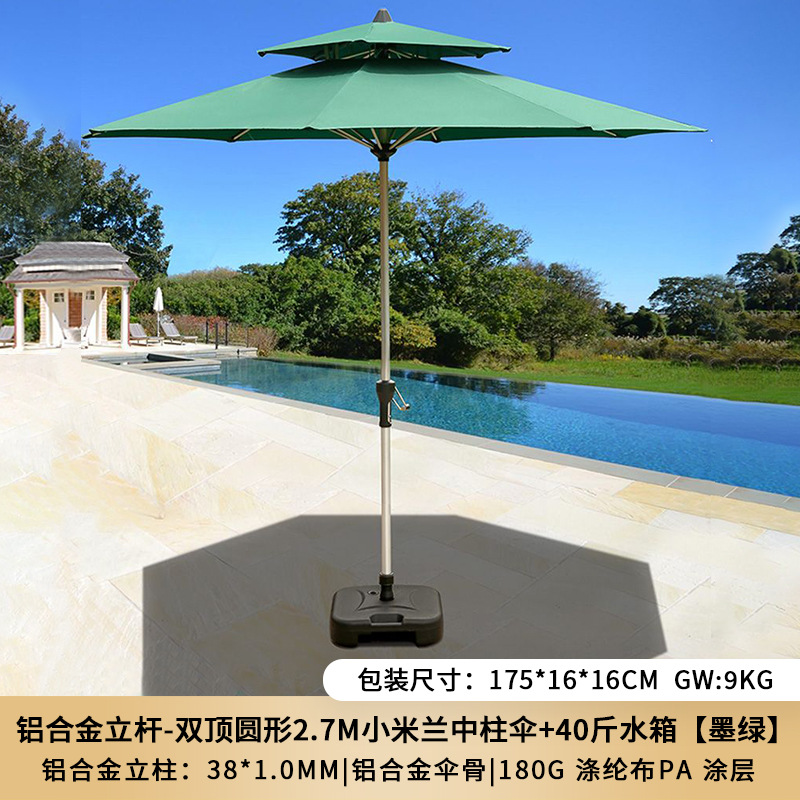 • 알루미늄 합금 극-더블 탑-40kg 물 탱크 라운드 2.7M-작은 밀라노 기둥 우산 [다크 그린]