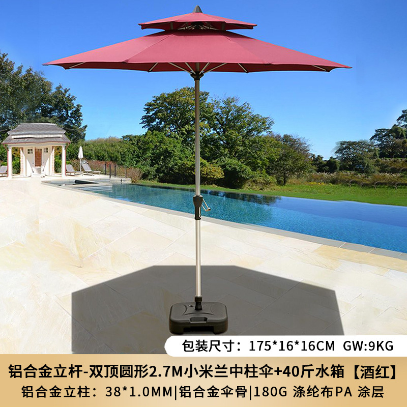 • 알루미늄 합금 극-더블 탑-40kg 물 탱크 라운드 2.7M-작은 밀라노 기둥 우산 [버건디]