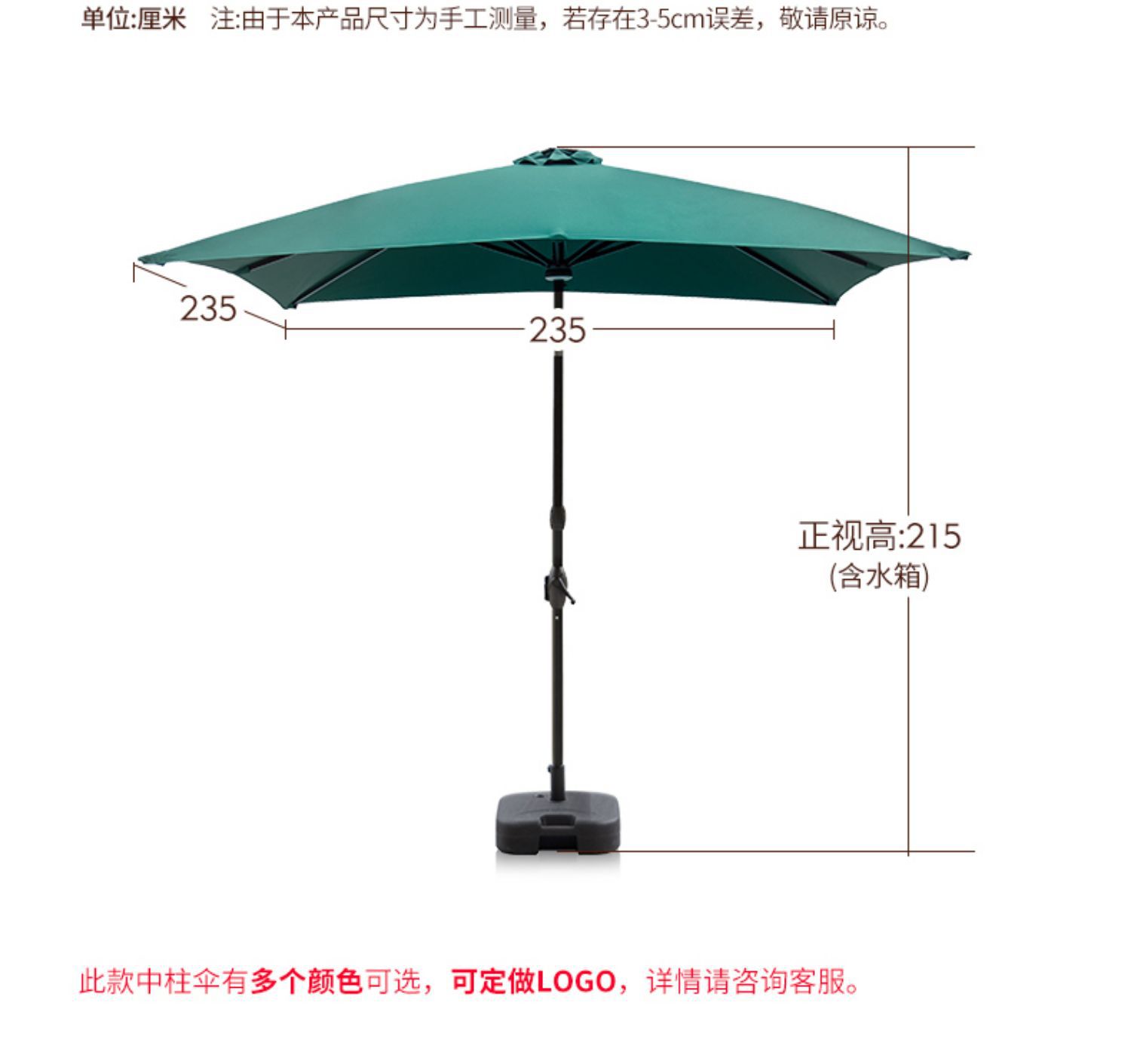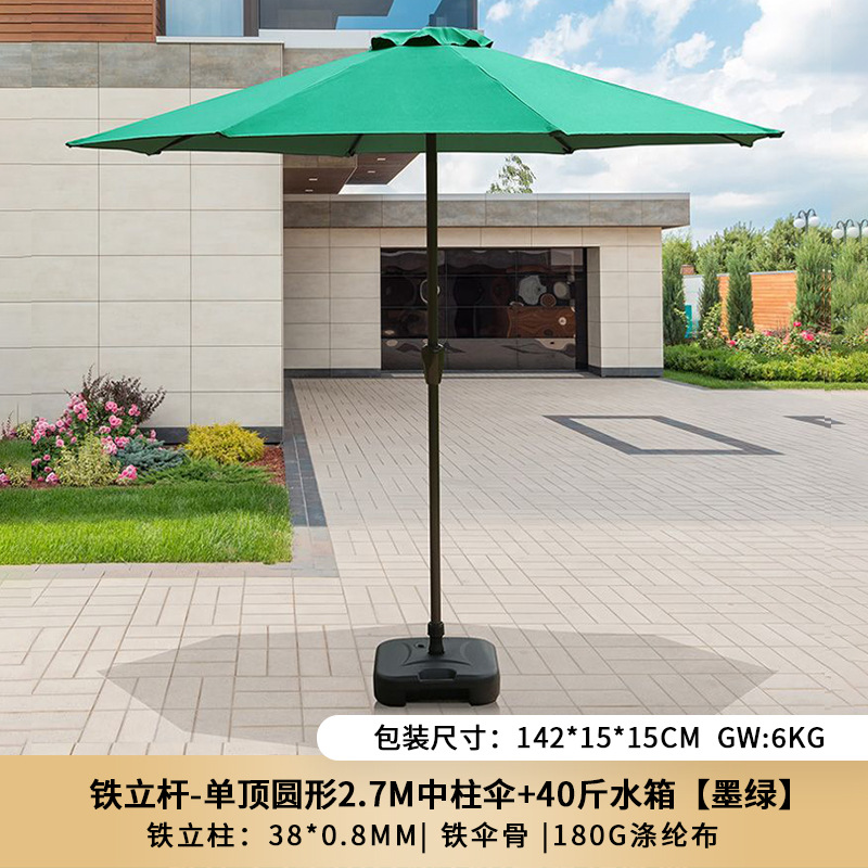 • 아이언 폴-싱글 탑-40kg 물 탱크-라운드 2.7M-중간 기둥 우산 [다크 그린]