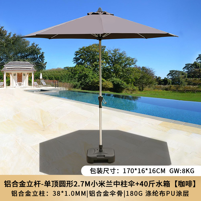 • 알루미늄 합금 극-싱글 탑-40kg 물 탱크 라운드 2.7M-작은 밀라노 기둥 우산 [커피]