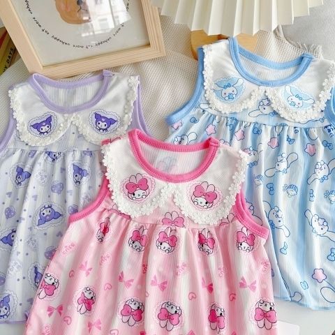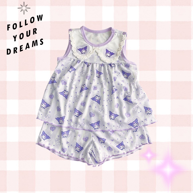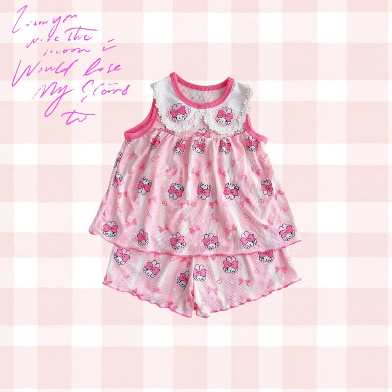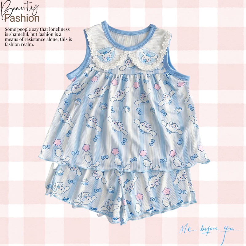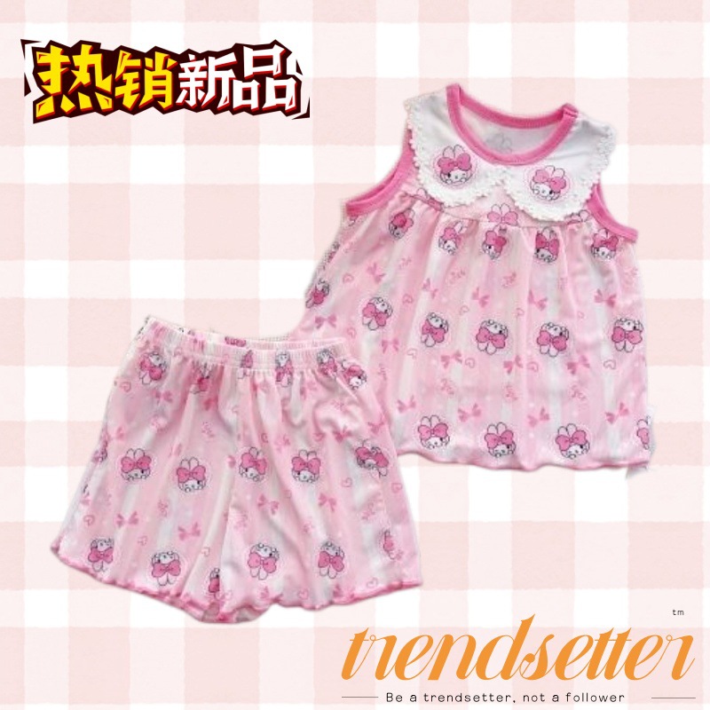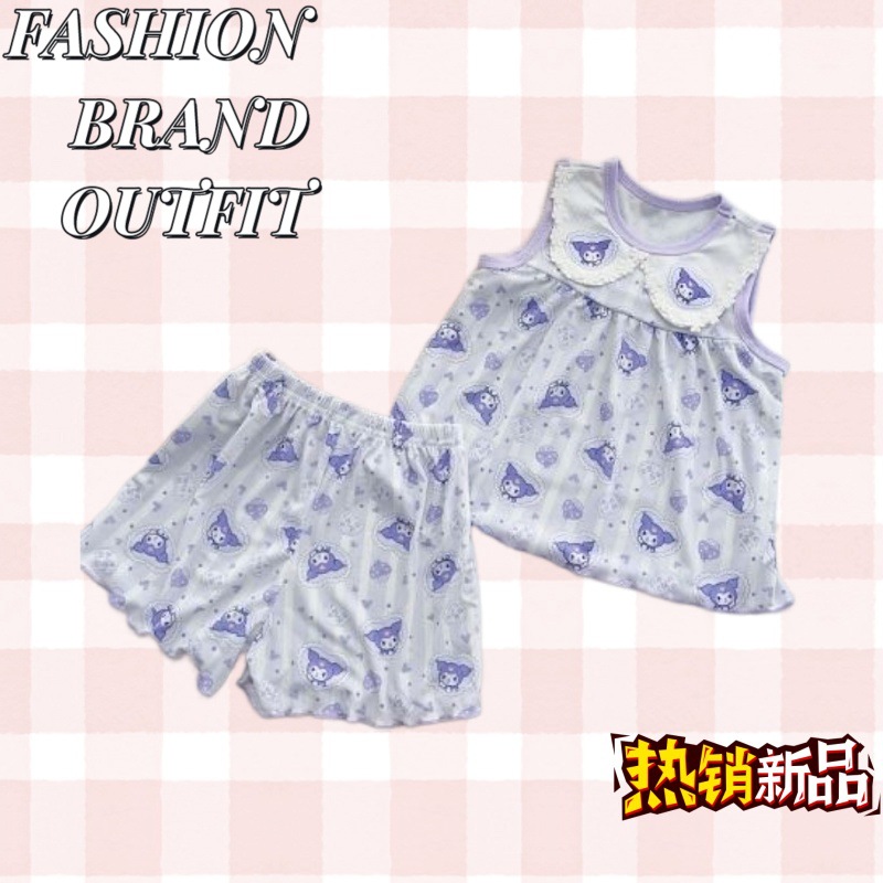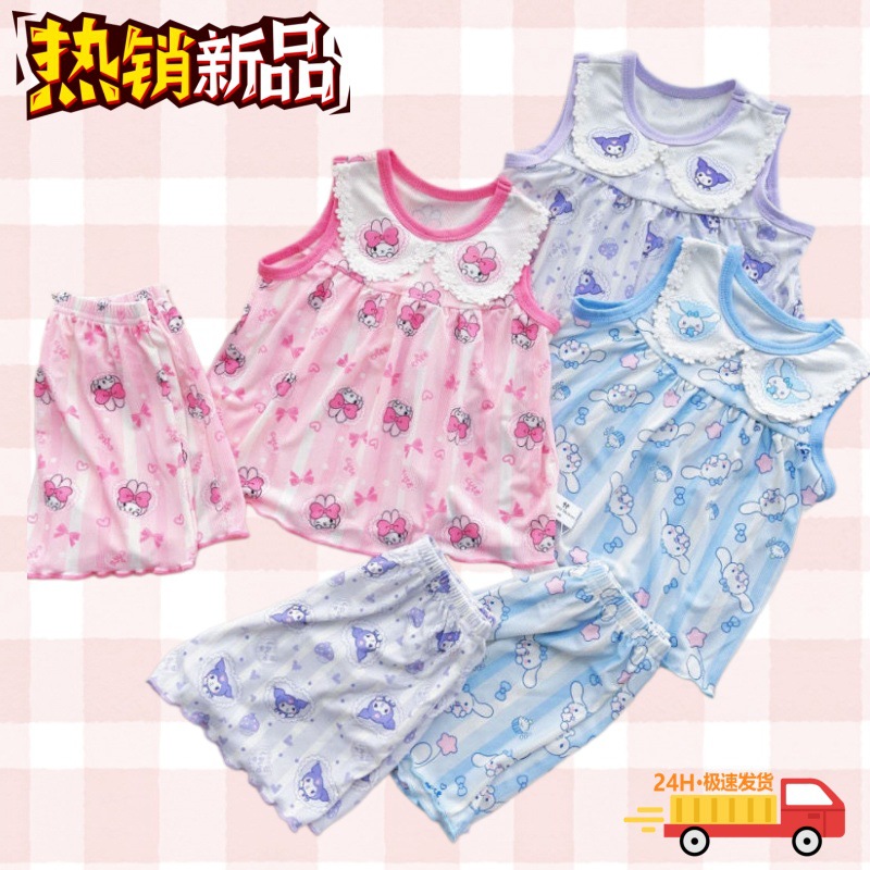 여름 새 여자 세트 쿨로 미 인형 칼라 조끼 홈 의류 패션 귀여운 민소매 투피스 세트