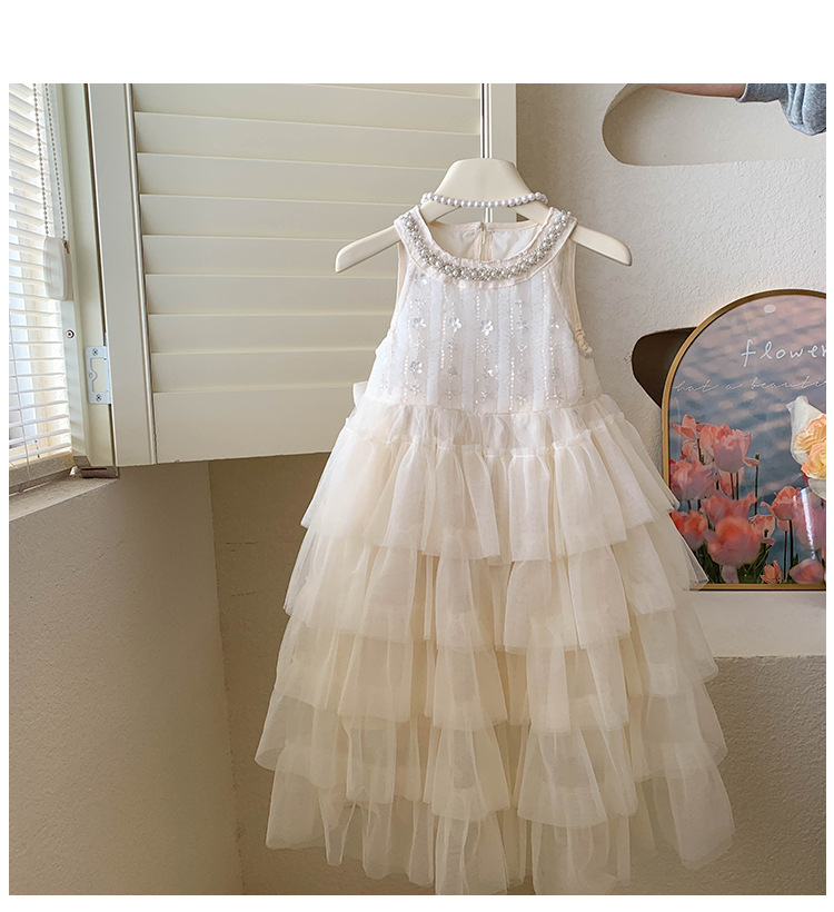 한국 스타일 2024 새로운 여름 소녀 원피스 스타일 푹신한 공주 원피스 어린이 여름 하이 엔드 원피스 스커트