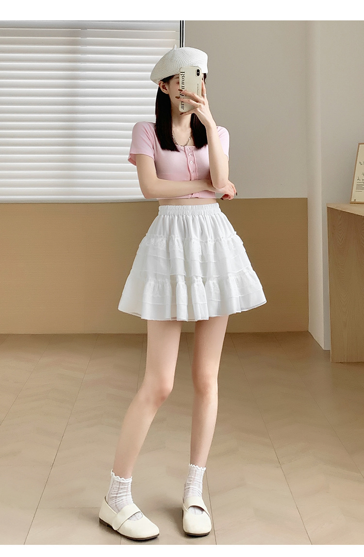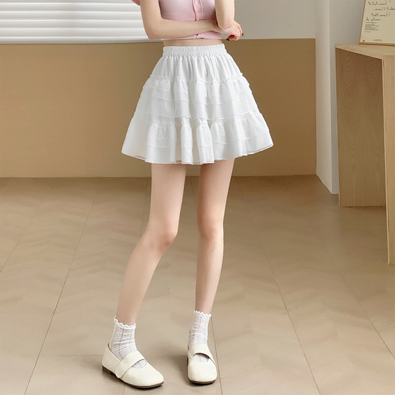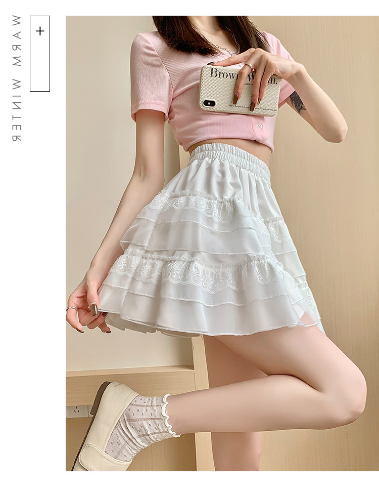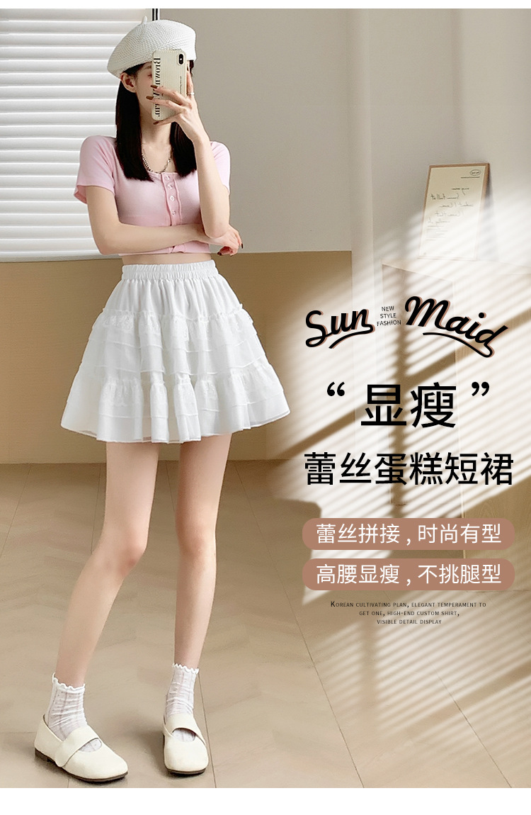 레이스 케이크 스커트 여성 여름 새로운 스타일 스커트 공주 스타일 화이트 스커트 나이 감소 높은 허리 우아한 우아한 치마스토어 가기