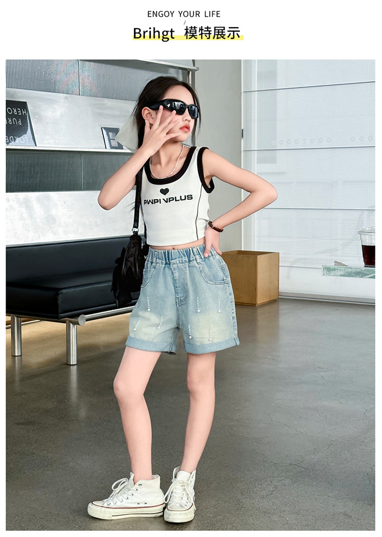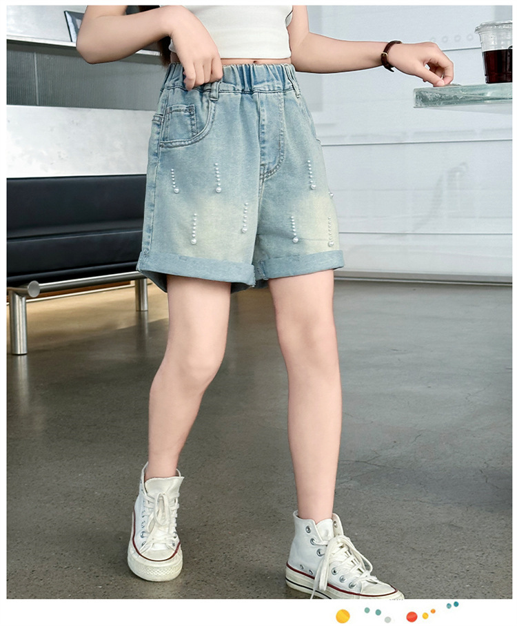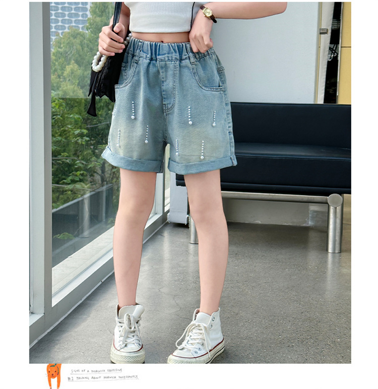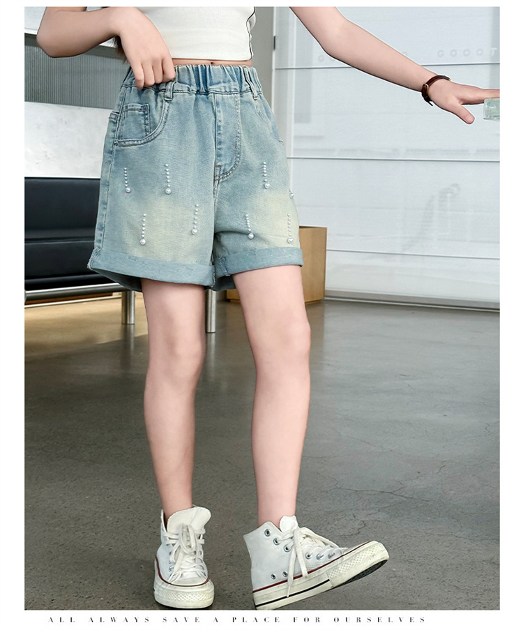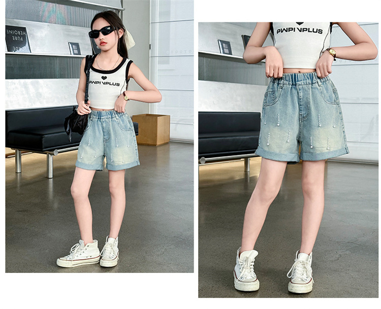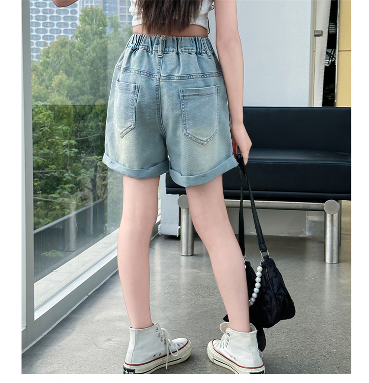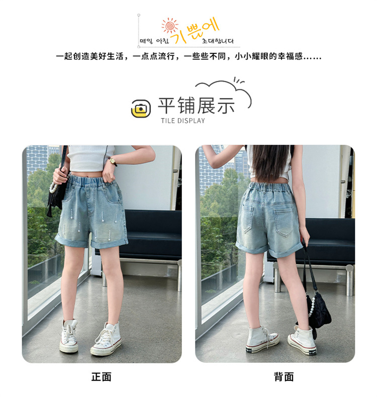 소녀 여름 얇은 데님 반바지 2024 새로운 스타일 유행 서양식 어린이 한국 스타일 여름 유행 바지스토어 가기