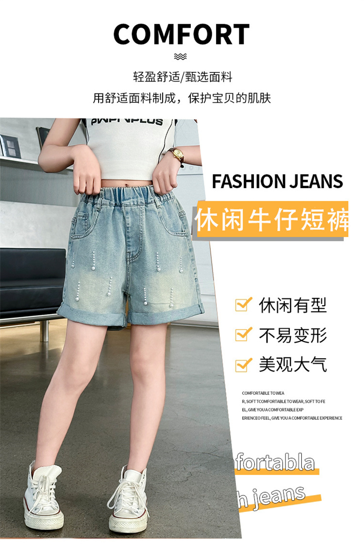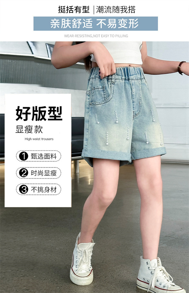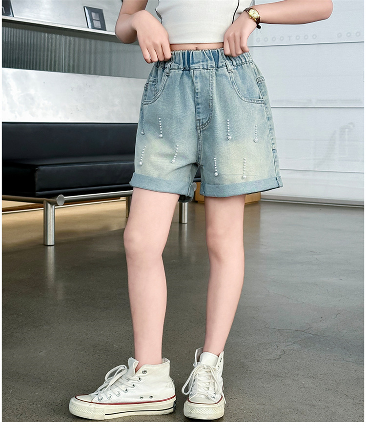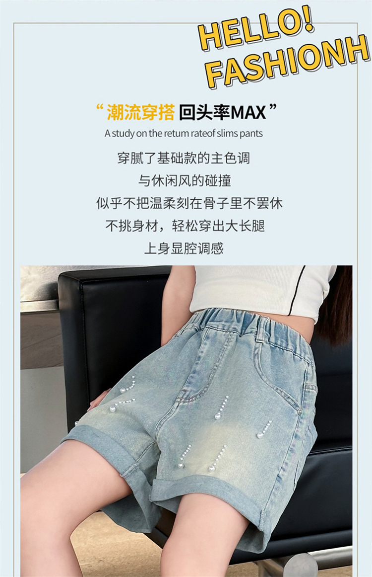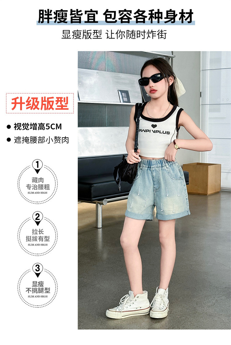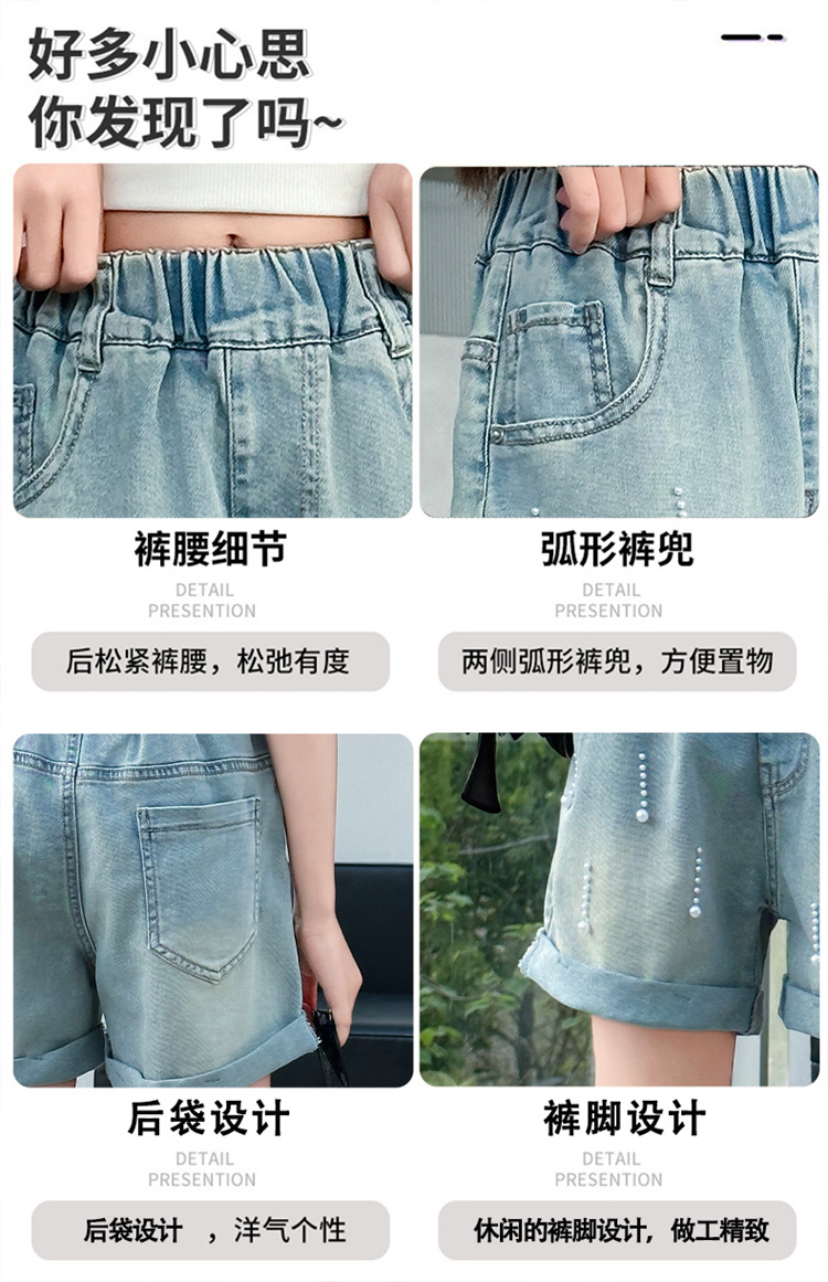 소녀 여름 얇은 데님 반바지 2024 새로운 스타일 유행 서양식 어린이 한국 스타일 여름 유행 바지스토어 가기
