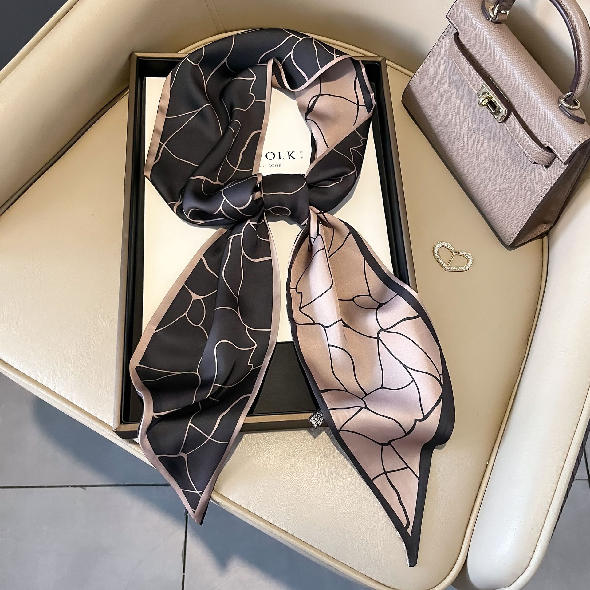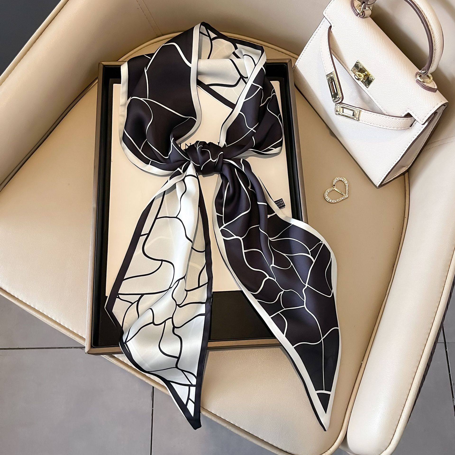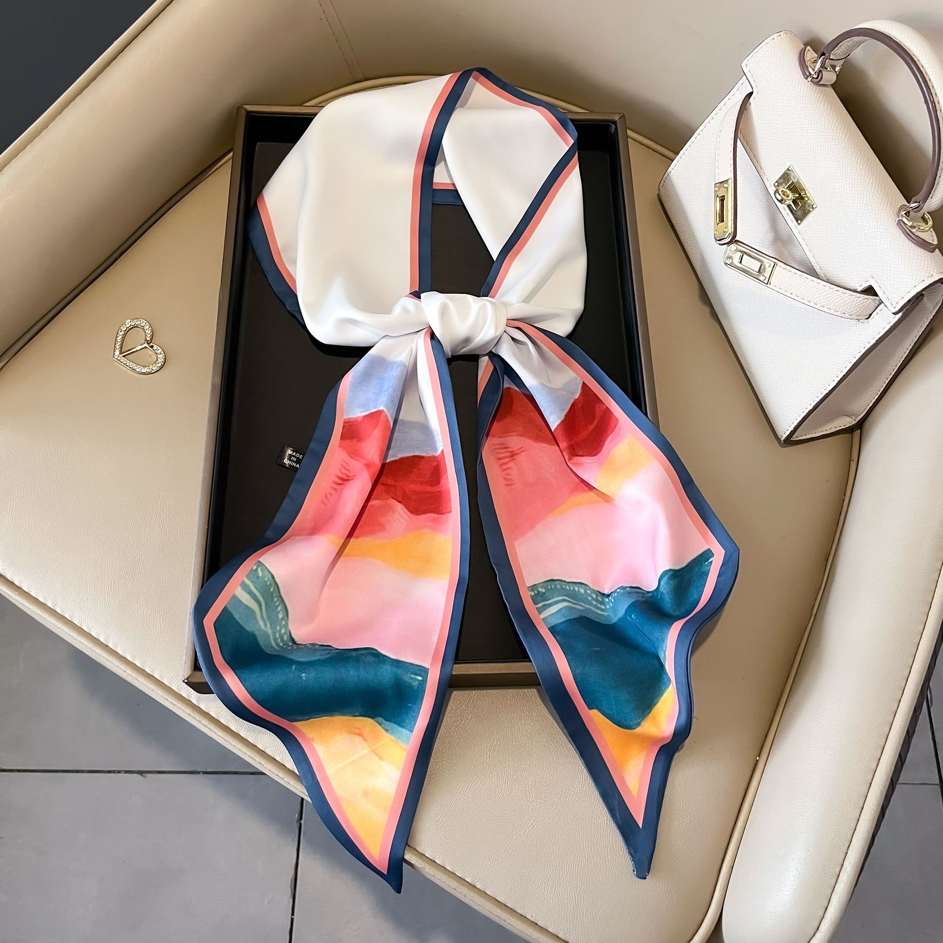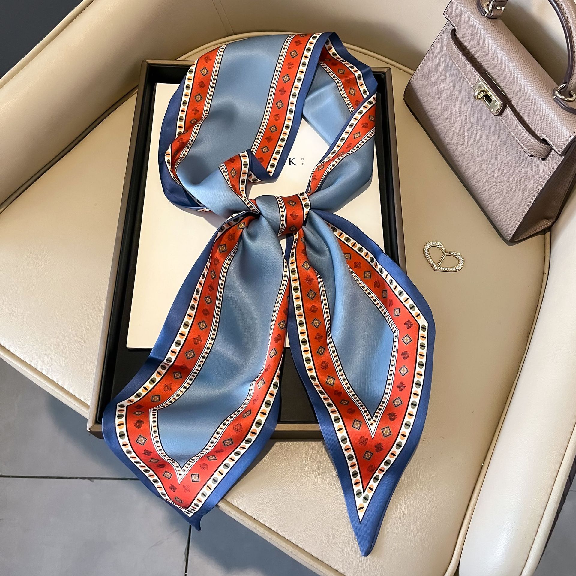 대형 앵글 리본 실크 스카프 여성의 새로운 한국 스타일 복고풍 패션 올매치 인쇄 전문 스카프스토어 가기