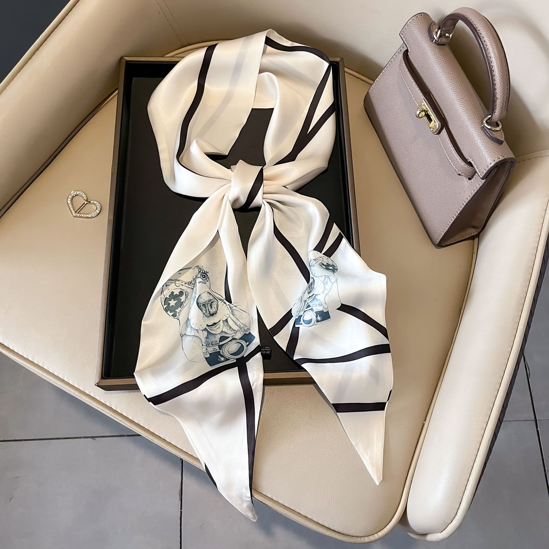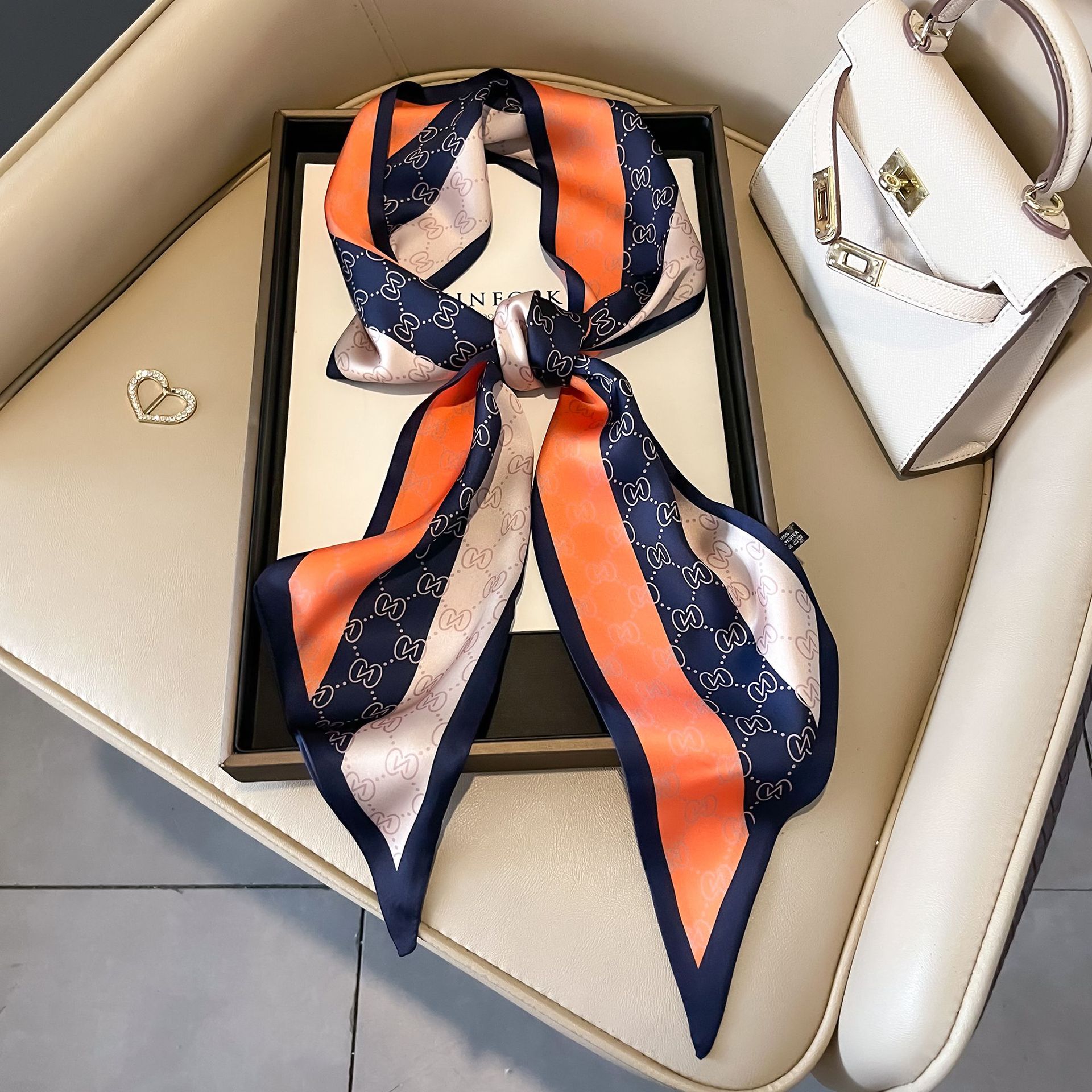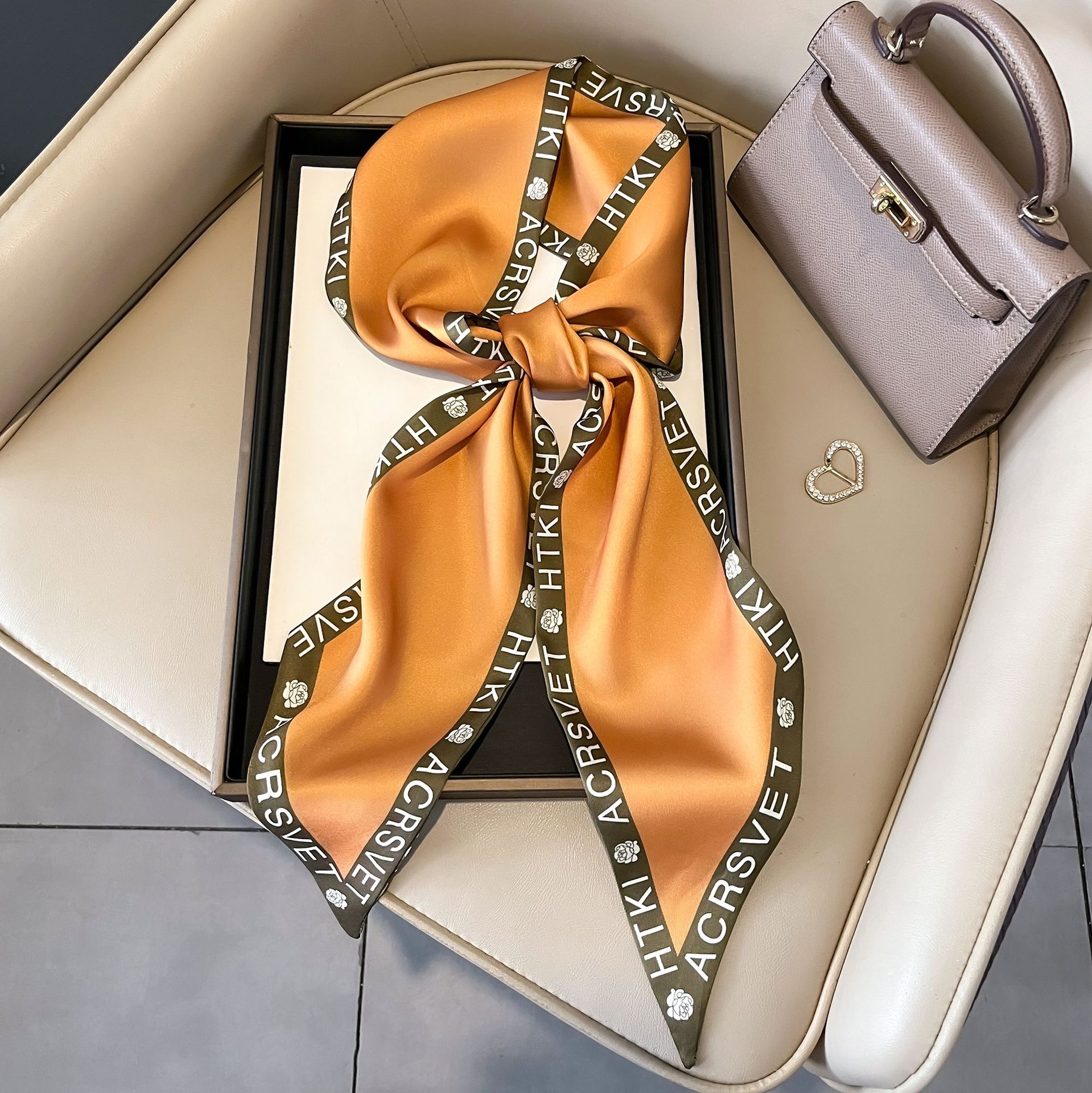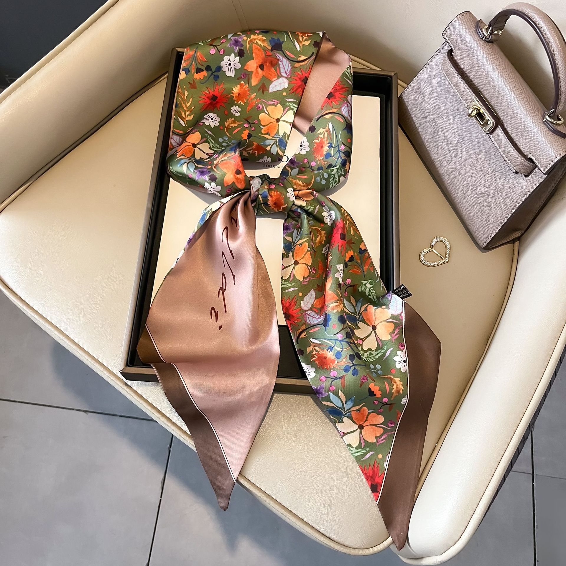 대형 앵글 리본 실크 스카프 여성의 새로운 한국 스타일 복고풍 패션 올매치 인쇄 전문 스카프스토어 가기