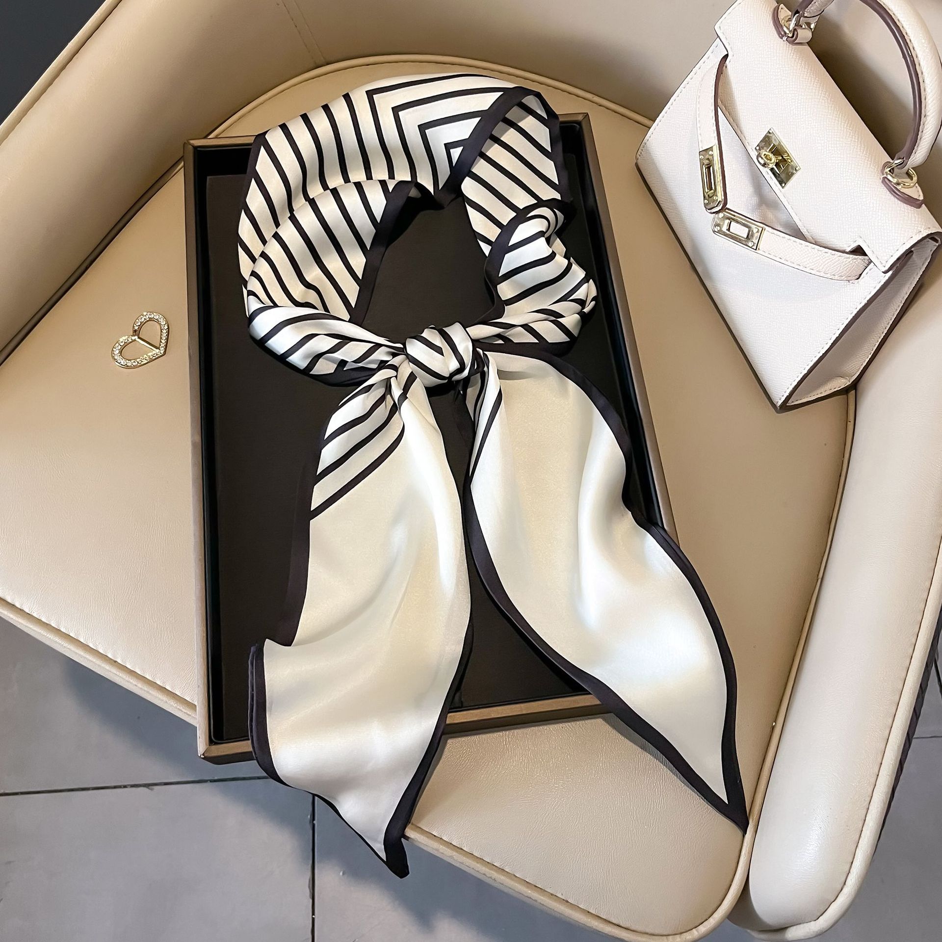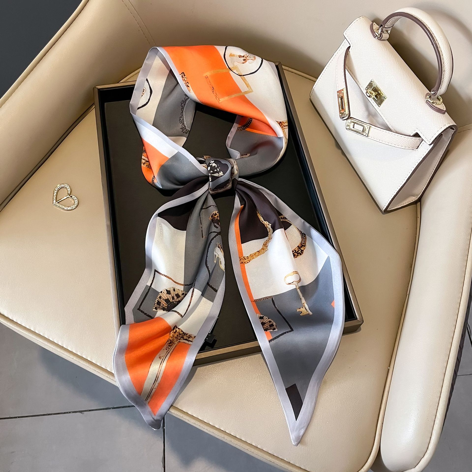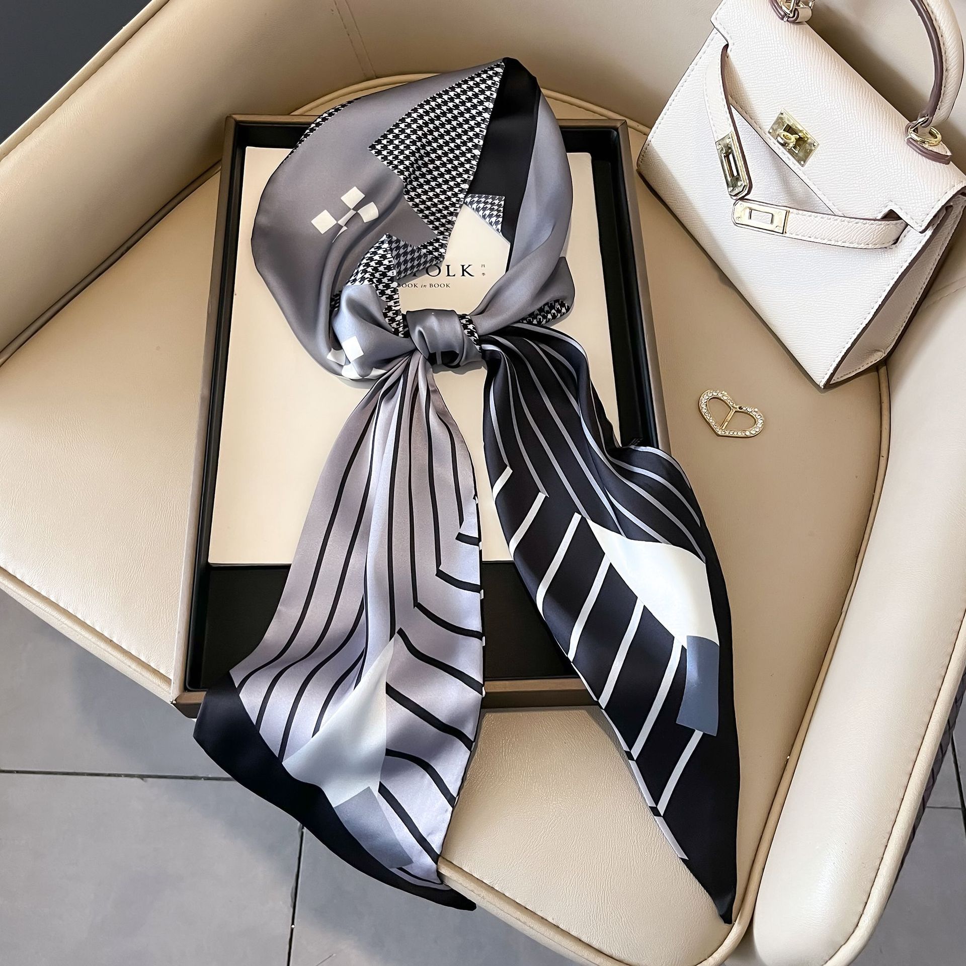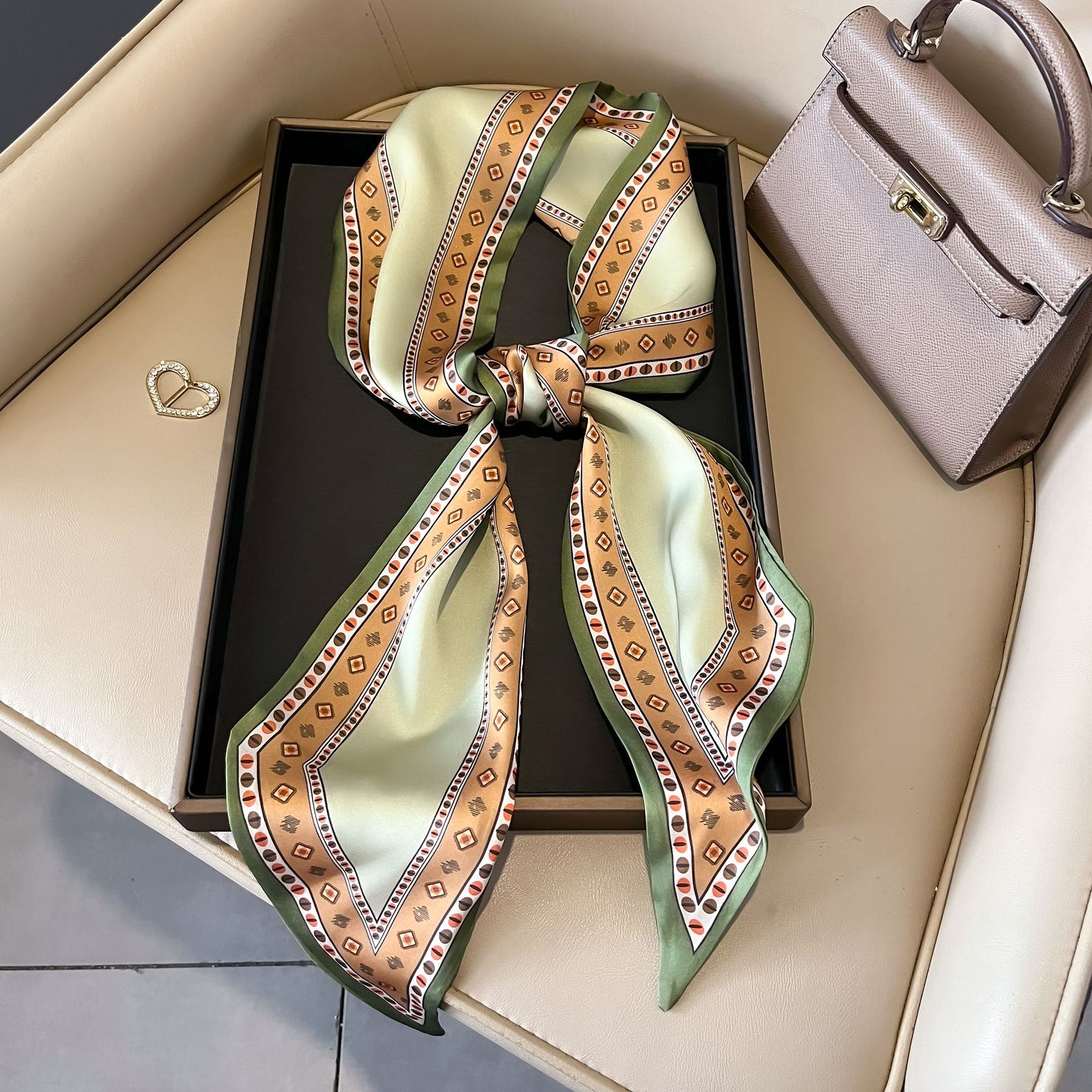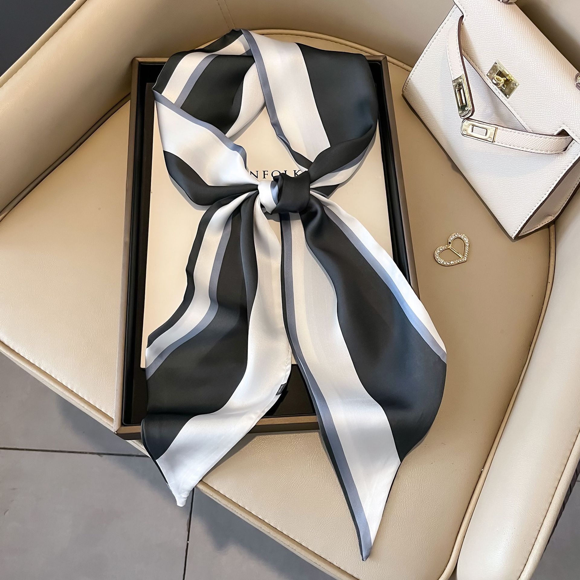 대형 앵글 리본 실크 스카프 여성의 새로운 한국 스타일 복고풍 패션 올매치 인쇄 전문 스카프스토어 가기