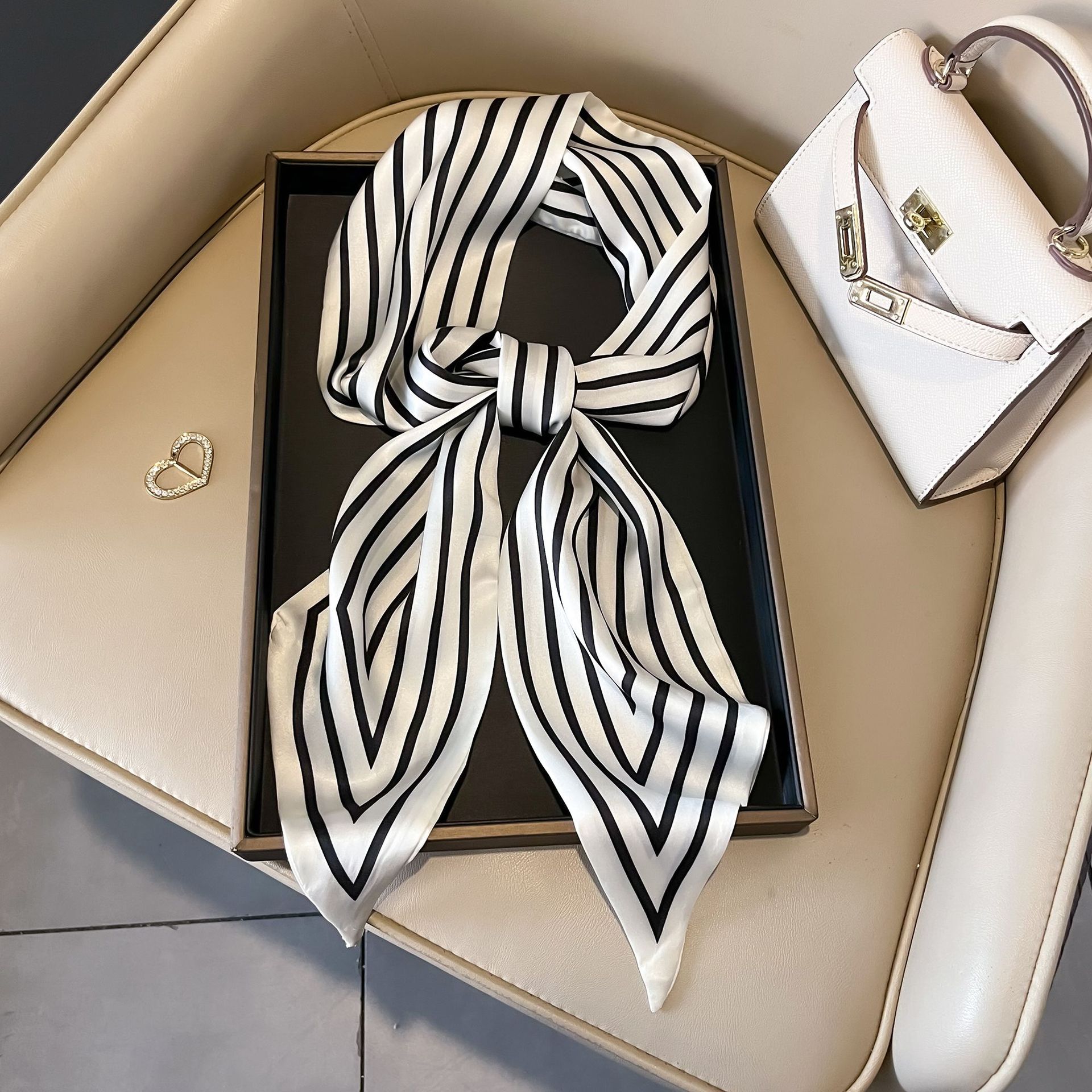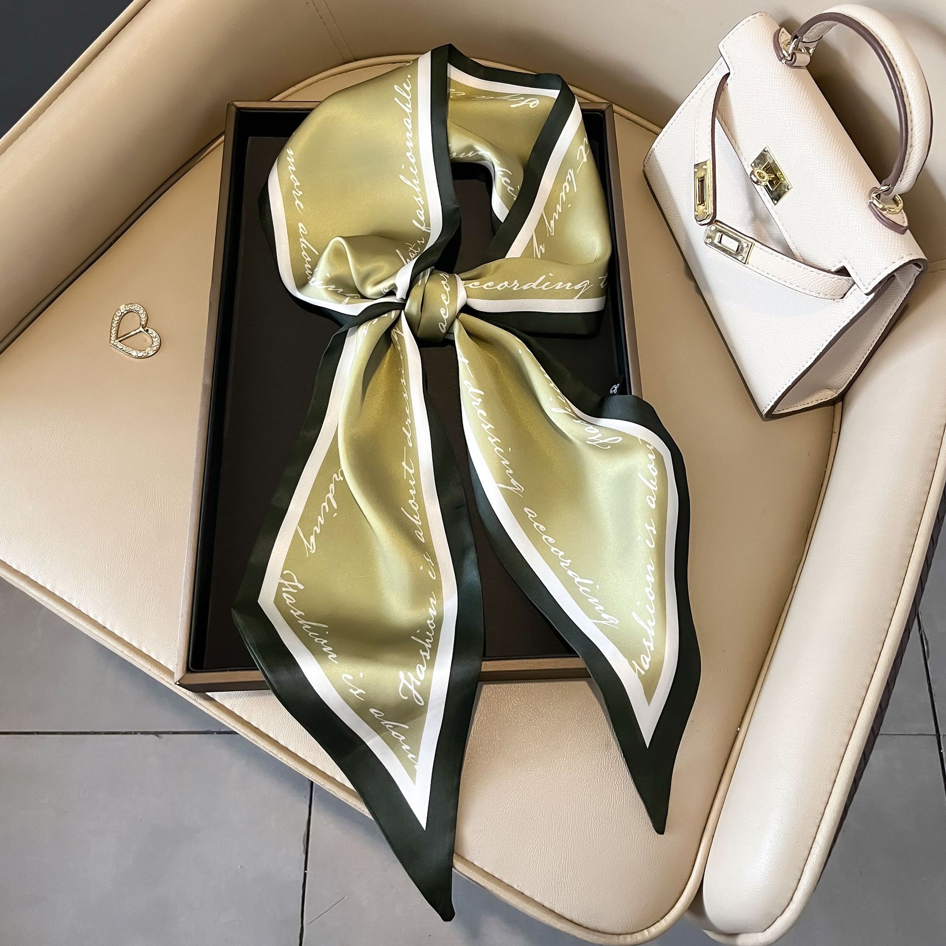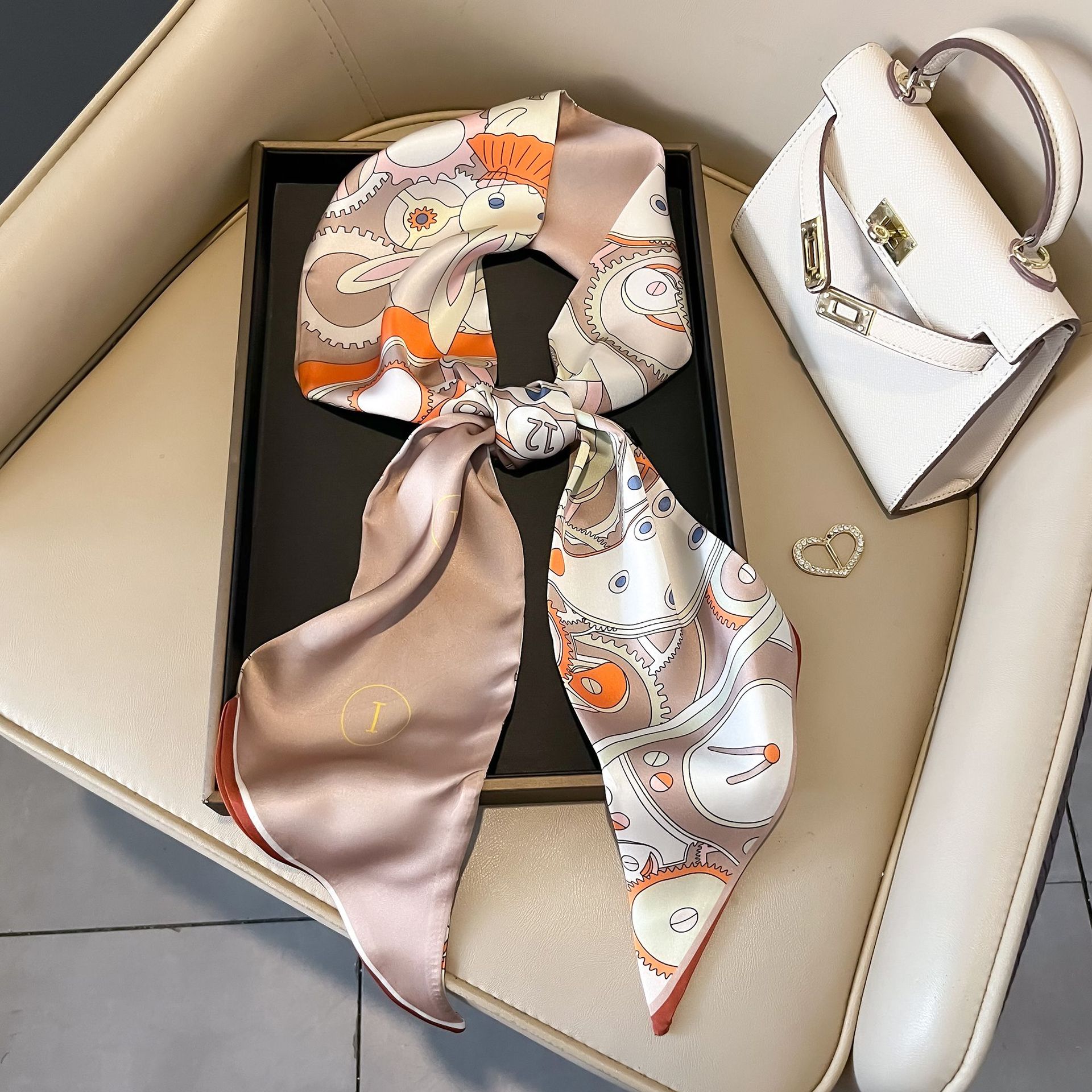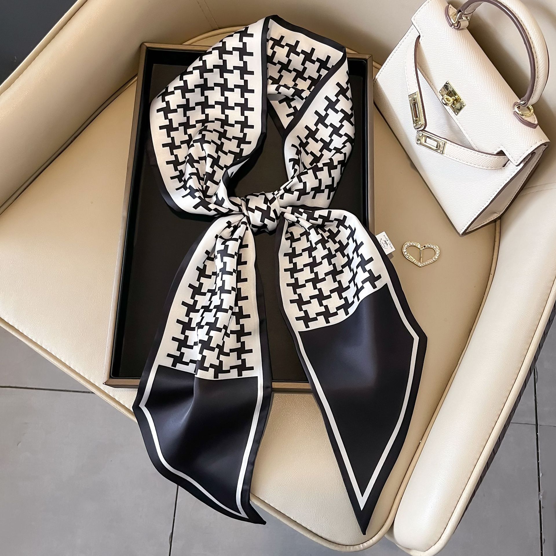대형 앵글 리본 실크 스카프 여성의 새로운 한국 스타일 복고풍 패션 올매치 인쇄 전문 스카프스토어 가기