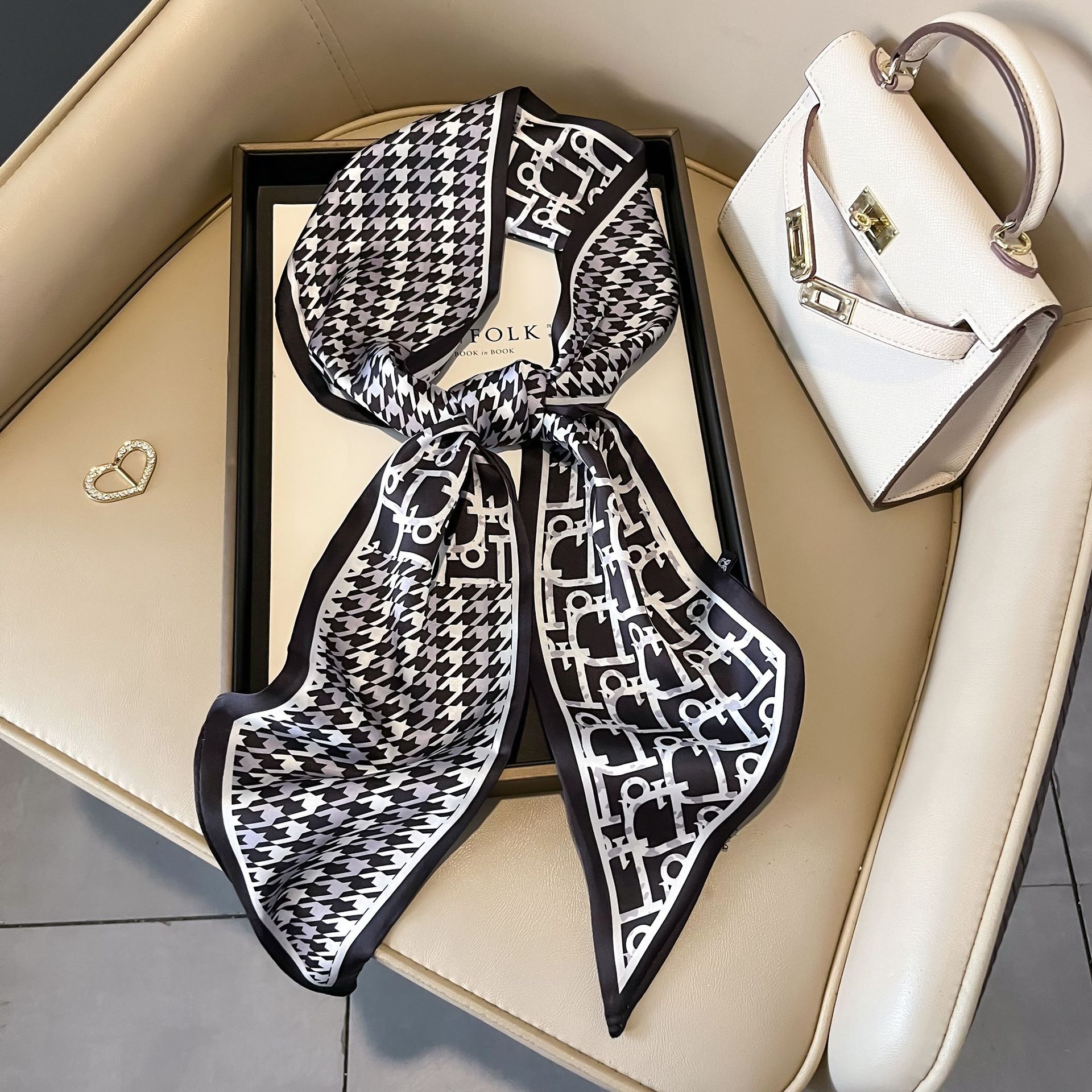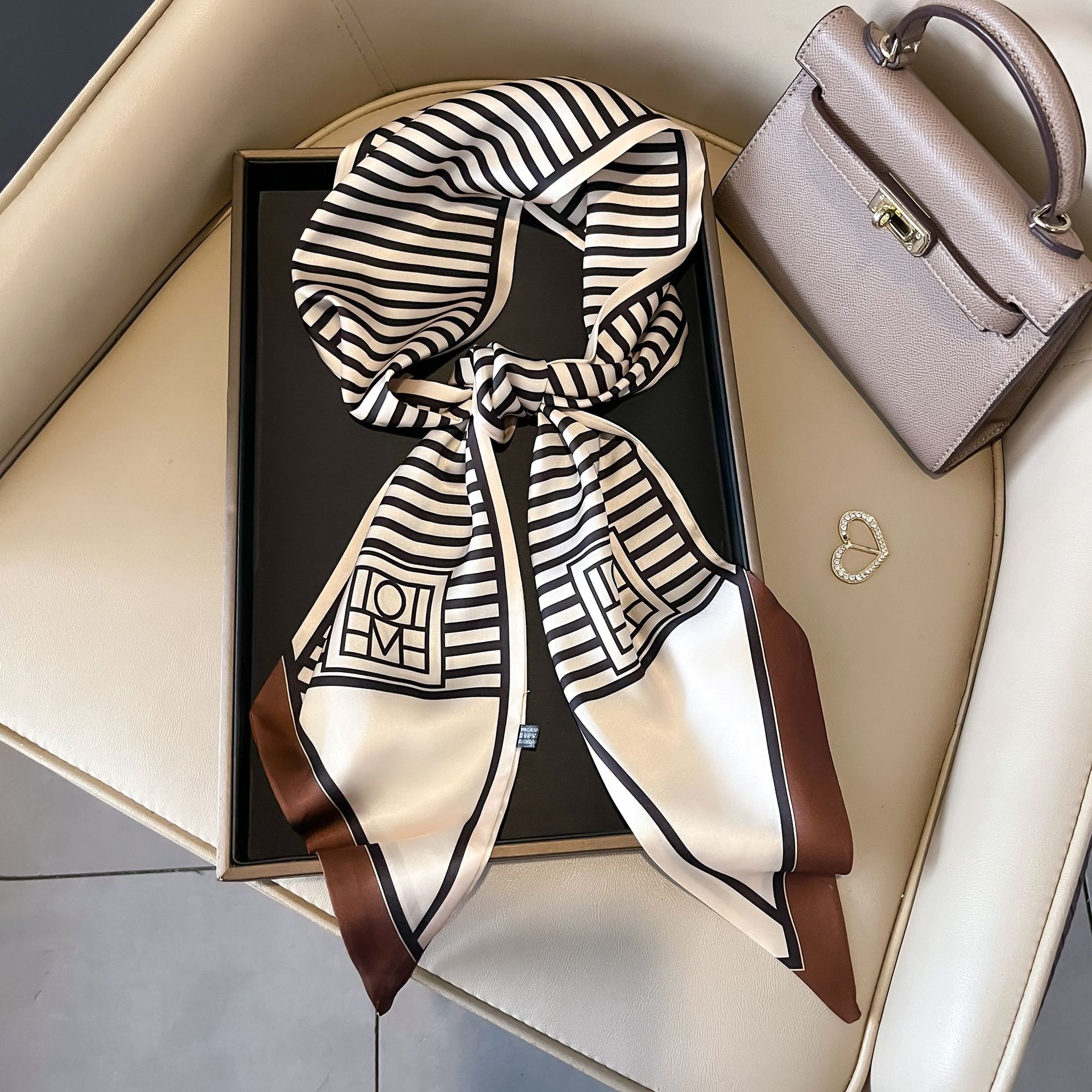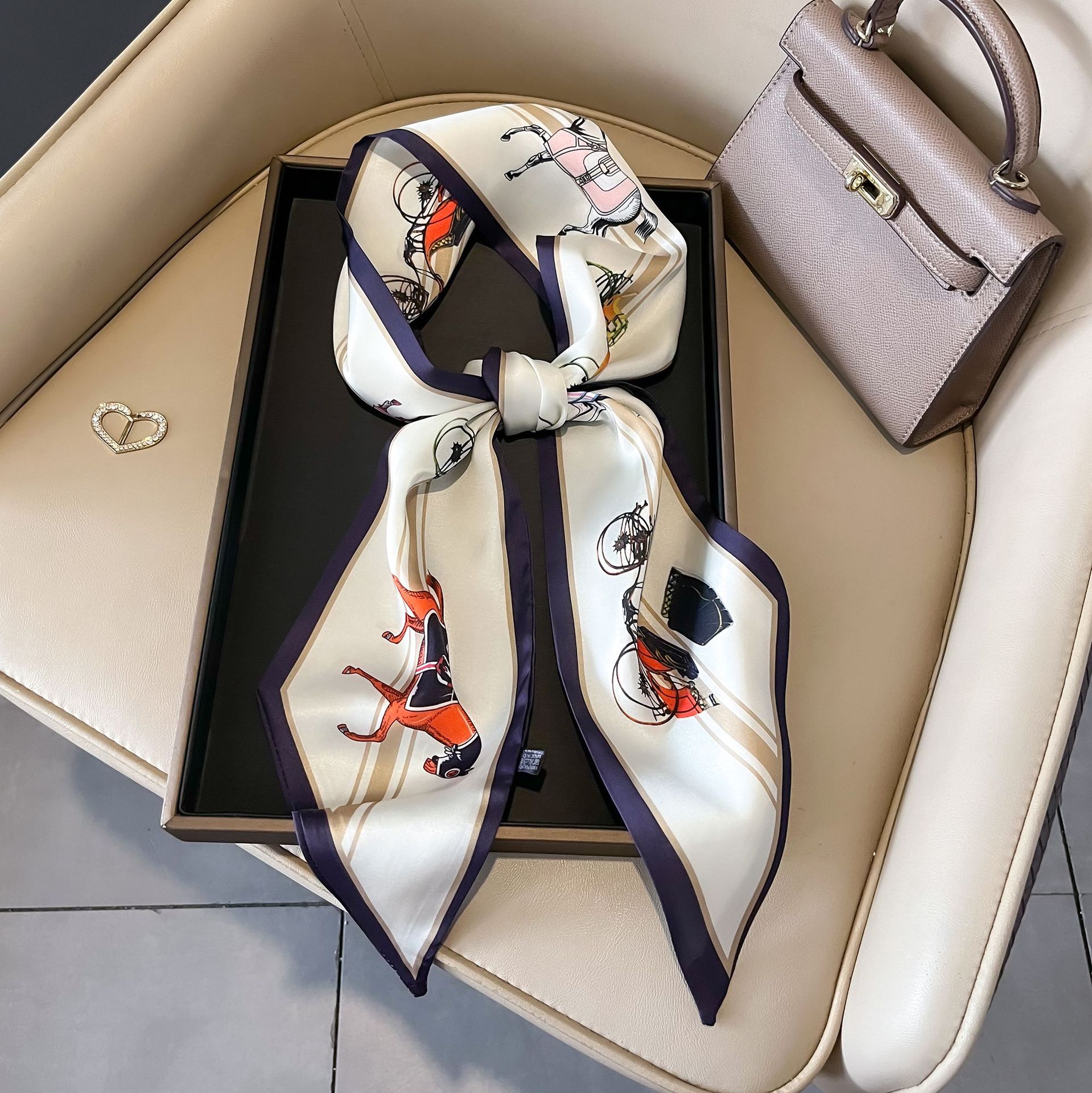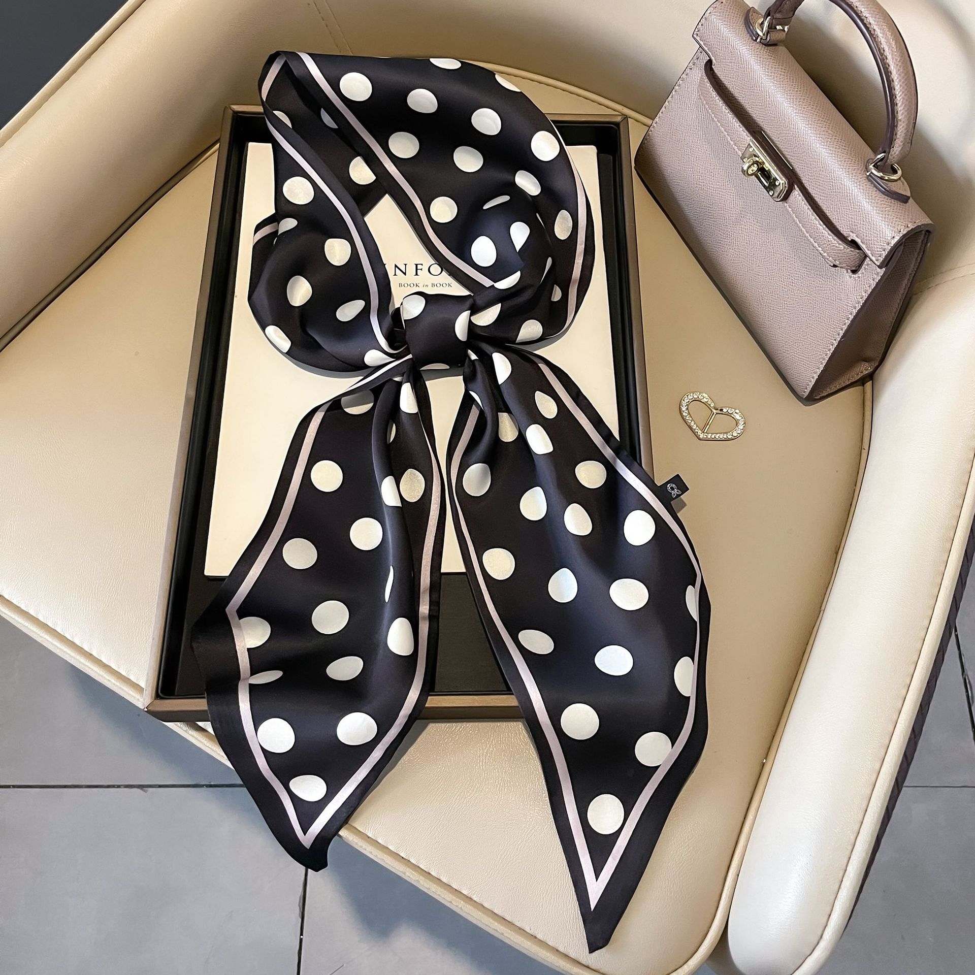 대형 앵글 리본 실크 스카프 여성의 새로운 한국 스타일 복고풍 패션 올매치 인쇄 전문 스카프스토어 가기