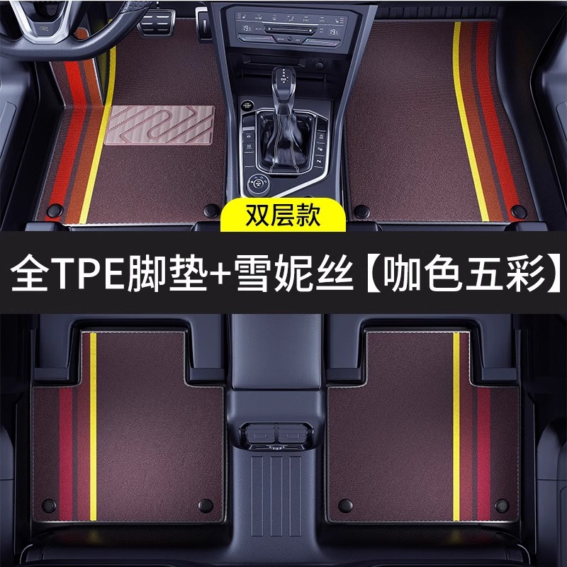 • 두꺼운 TPE 더블 레이어 바닥 매트 + 셰니스 [커피 컬러풀] + 트렁크 매트(예비
