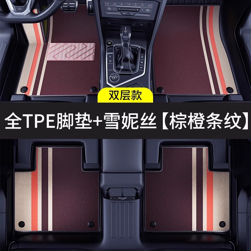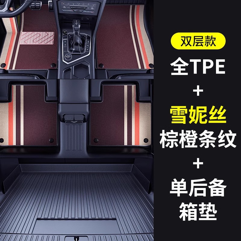 • 두꺼운 TPE 이중 바닥 매트 + 셰니스 [갈색과 주황색 줄무늬] + 트렁크 매트(비품)