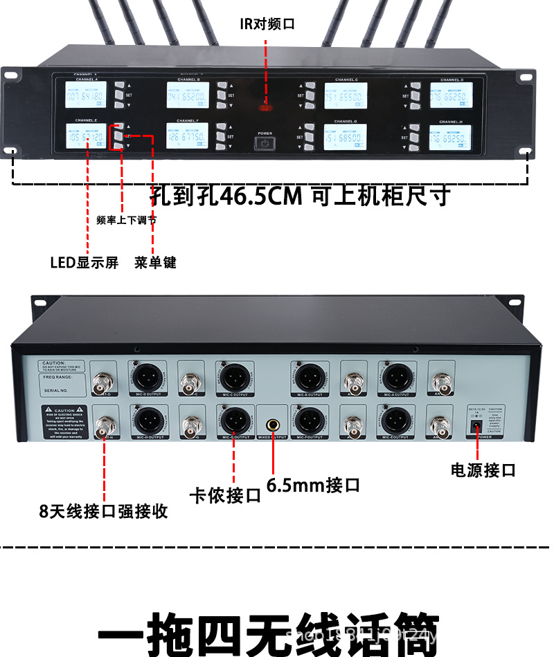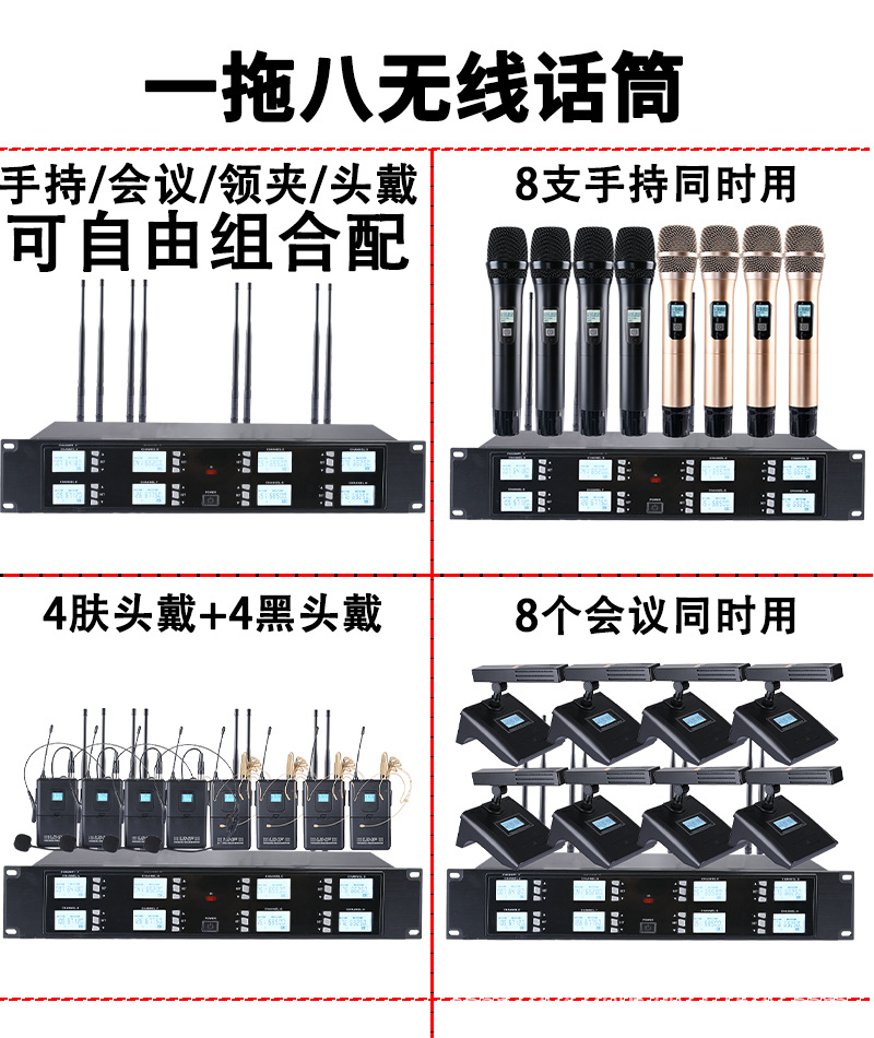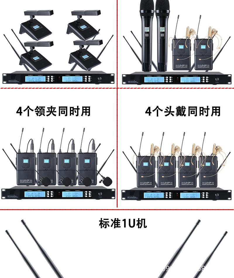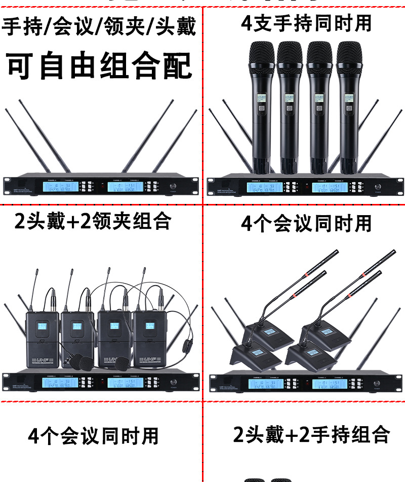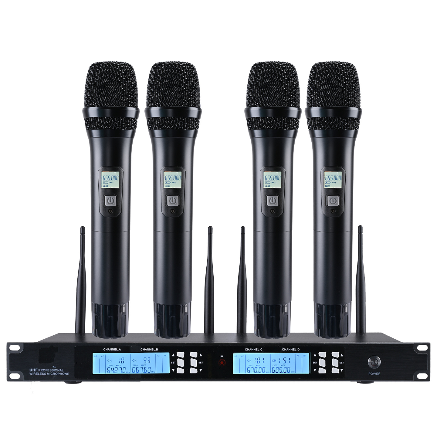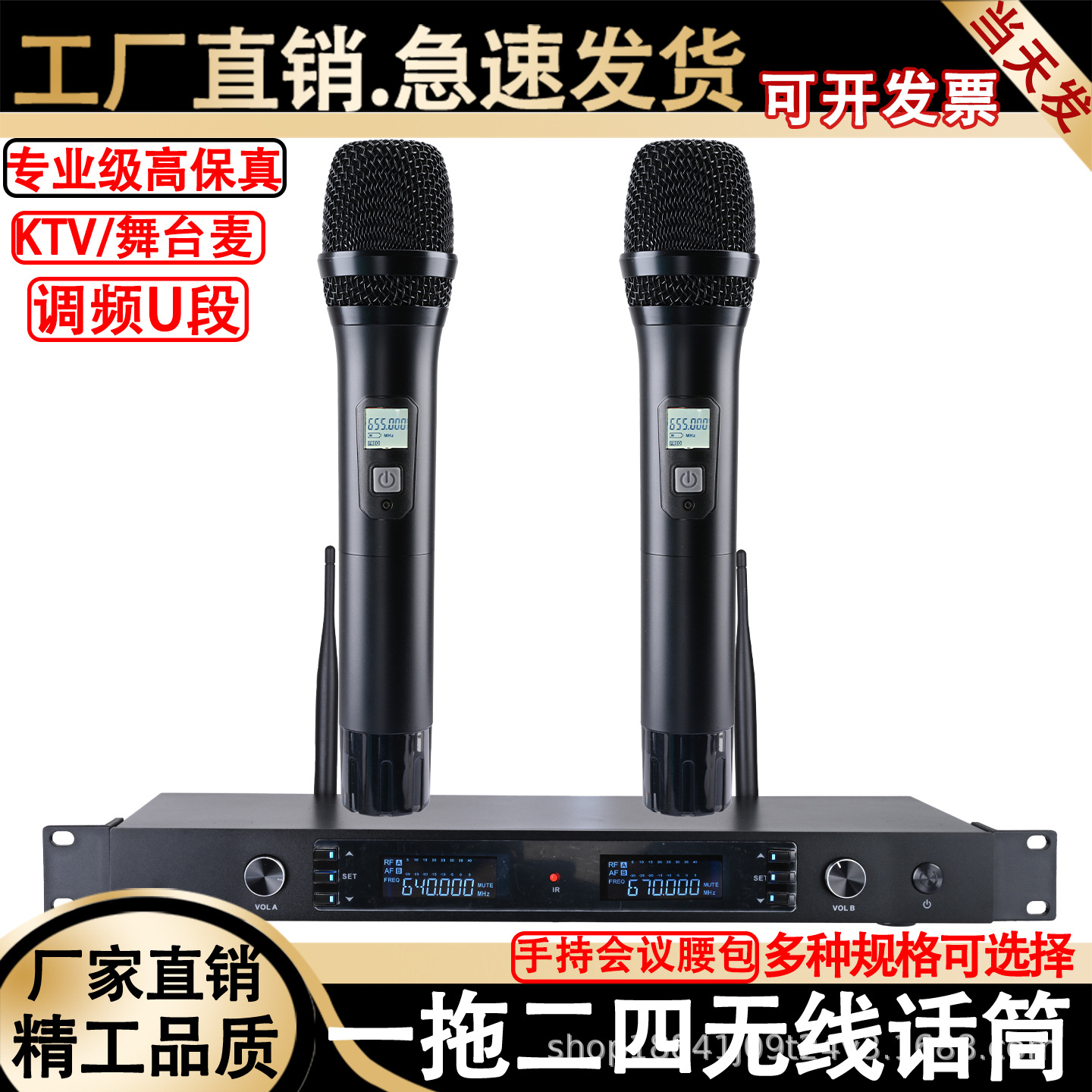 일대일/4 대 1 무선 마이크 홈 KTV 무대 공연 야외 회의 노래 K-Song 핸드 헬드 U-세그먼트 마이크