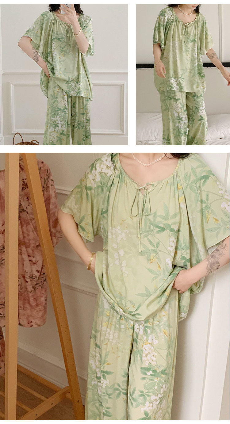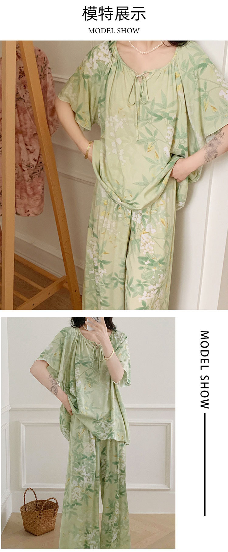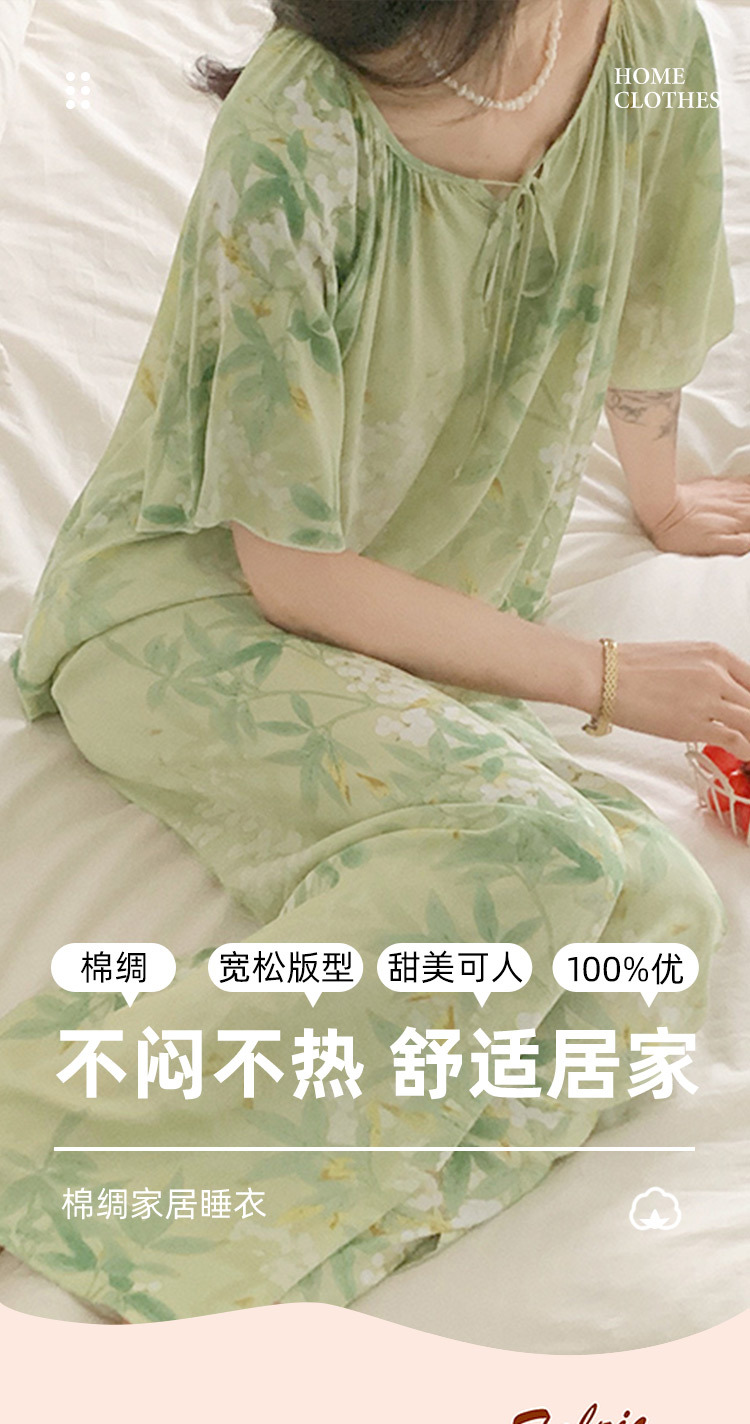 새로운 중국 스타일 면 실크 파자마 여성 여름 요정 스타일 봄과 여름 새로운 국가 스타일 개선 한푸 반팔 면 실크 홈 의류 세트스토어 가기