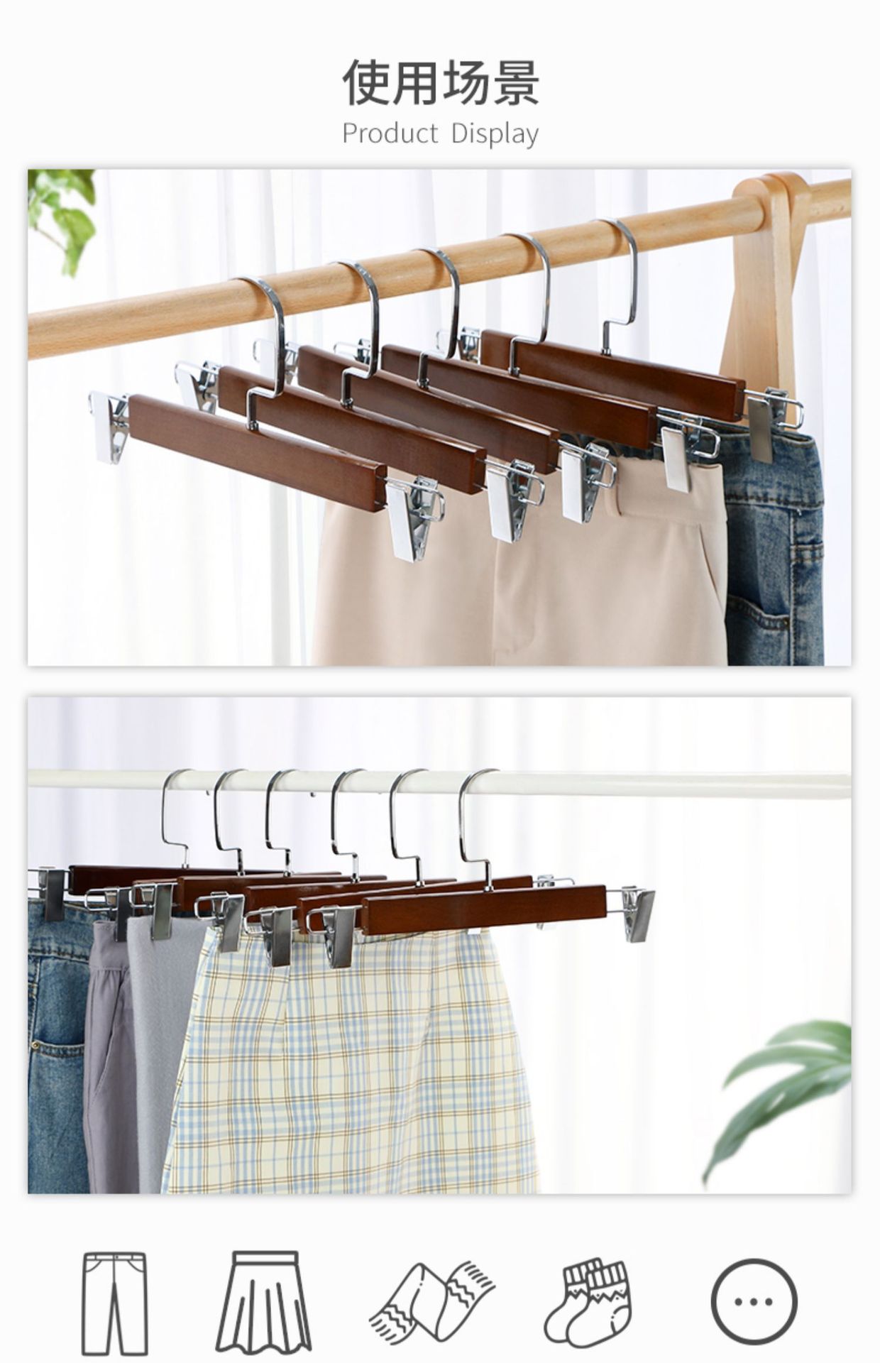 솔리드 우드 팬츠 랙 팬츠 클립 스커트 홈 팬츠 지원 미끄럼 방지 원활한 강한 의류 매장 옷걸이 바지 매달려 나무 도매스토어 가기