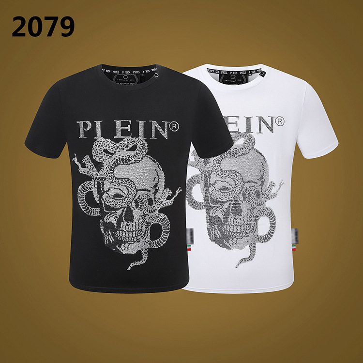 아마존 AliExpress 조수 브랜드 Philippe Plan PP 남성 티셔츠 두개골 머리 모조 다이아몬드 짧은 소매 머리카락 세대
