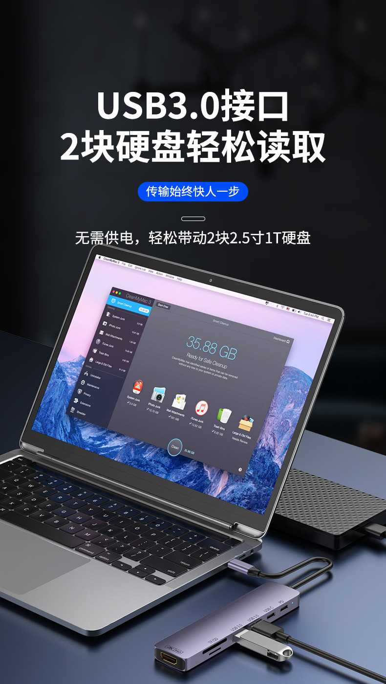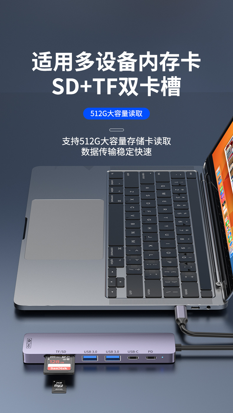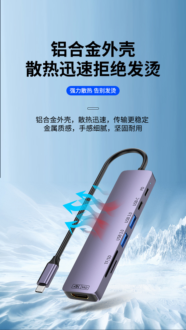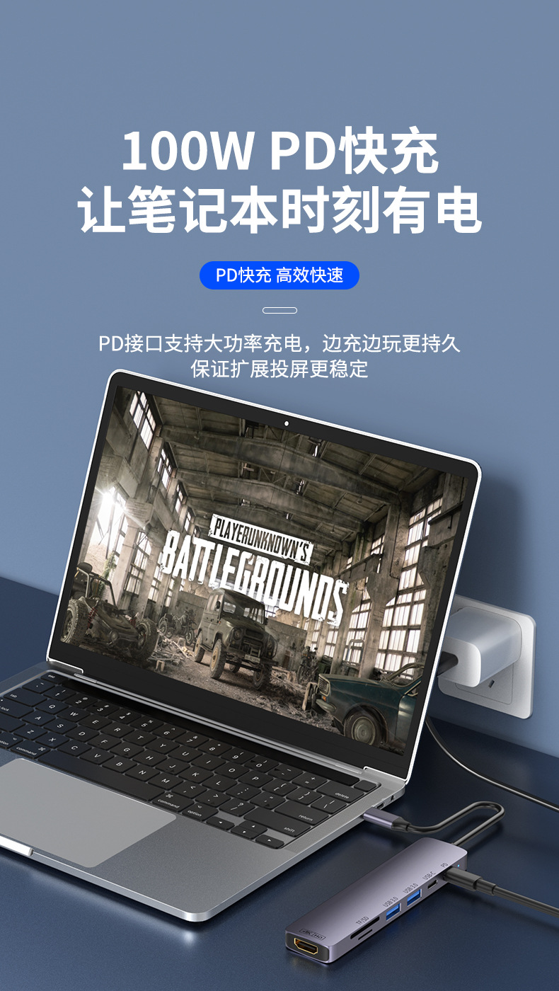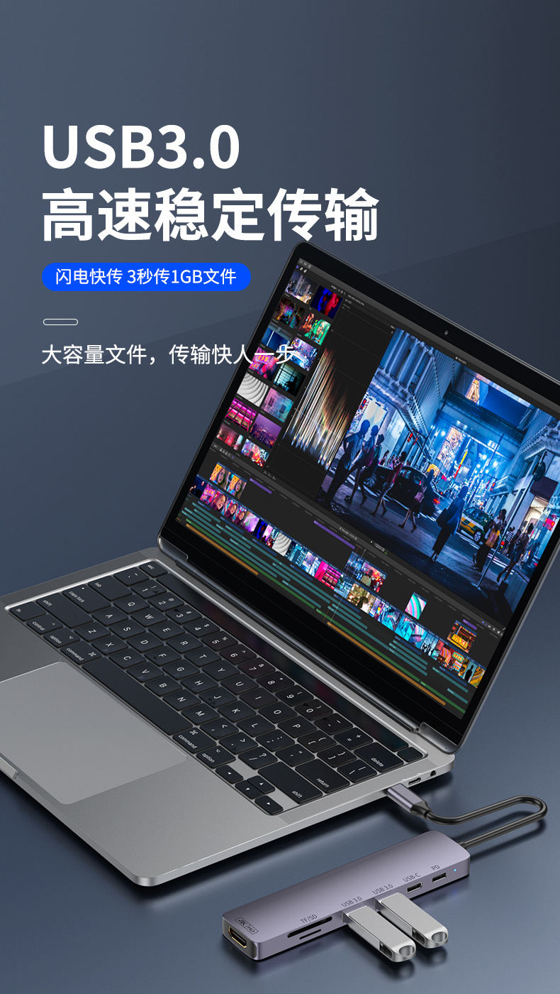 Typec 확장 노트북 usb3.0hub 분배기 100W 충전 4K60HZ 스크린 프로젝션 변환기 확장 도크스토어 가기