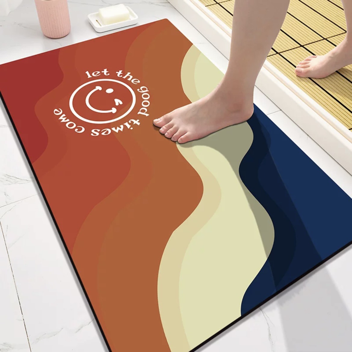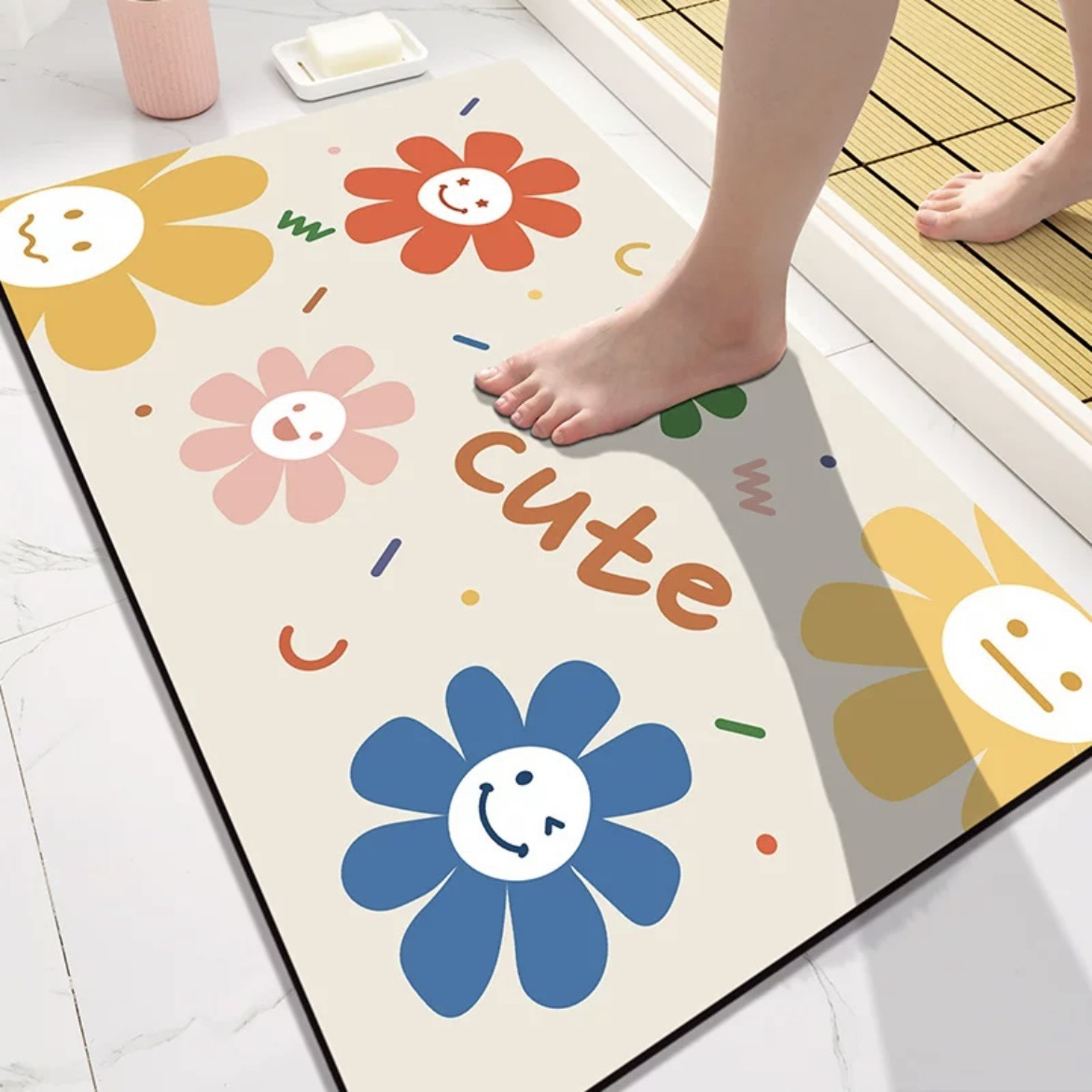 만화 스마일리 레인보우 욕실 Diatom 진흙 흡수성 매트 가정용 욕실 미끄럼 방지 발 매트 입구 문 매트스토어 가기