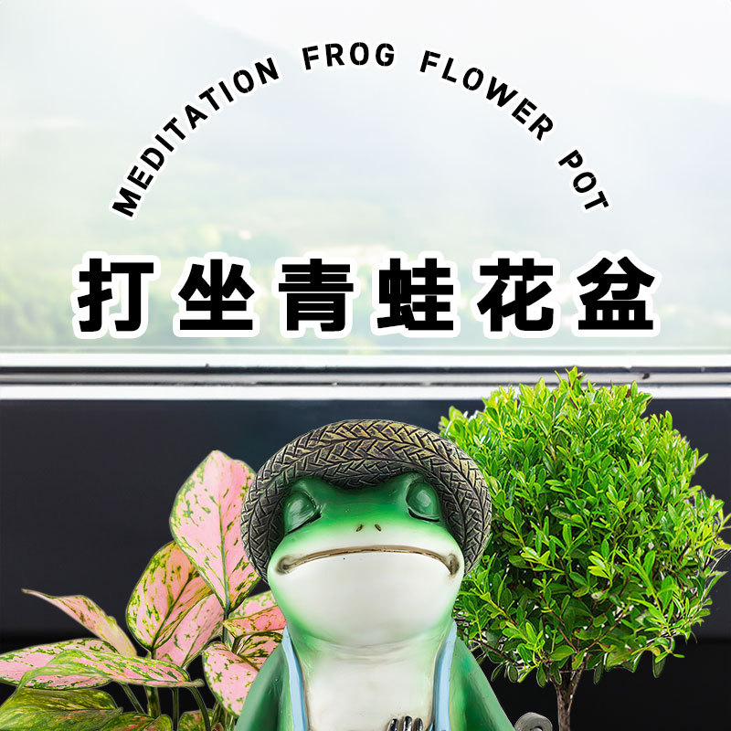 本店所有产品单价均未含税票,税票联系客服根据专票或普票进行收取开具发票新品花园摆件户外庭院青蛙摆件创意冥想打坐青蛙花盆多肉可爱