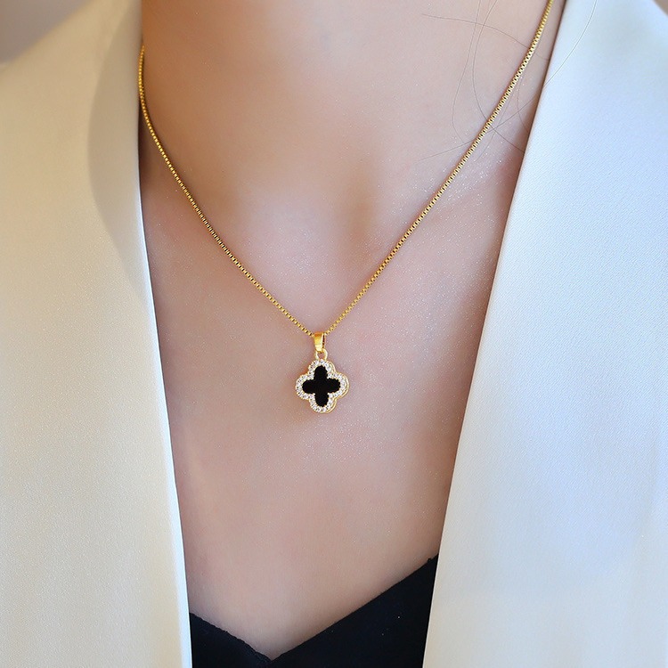 • 클래식 양면 흑백 클로버 목걸이