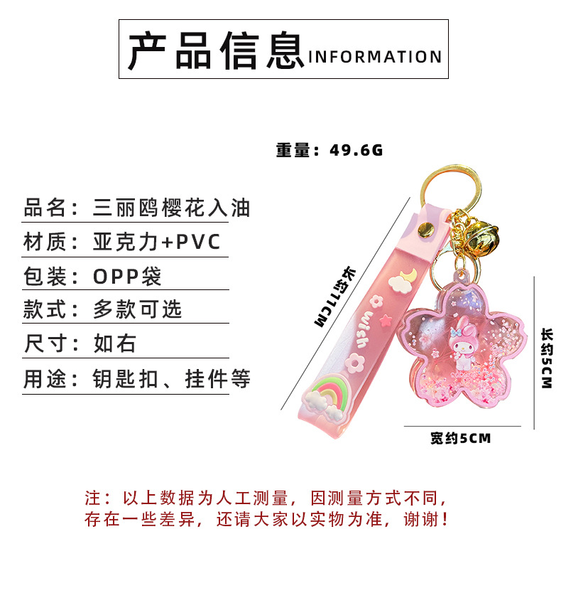 인터넷 유명인의 오일 꽃가루 키링 귀여운 쿠로미 가방 장식품 정교한 여성용 자동차 키체인스토어 가기
