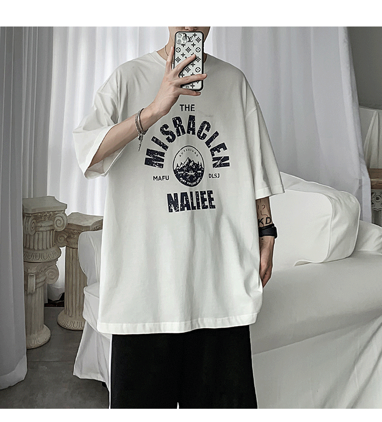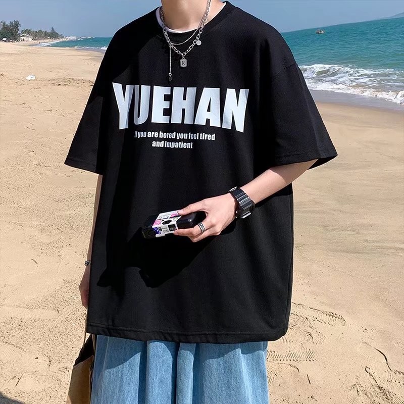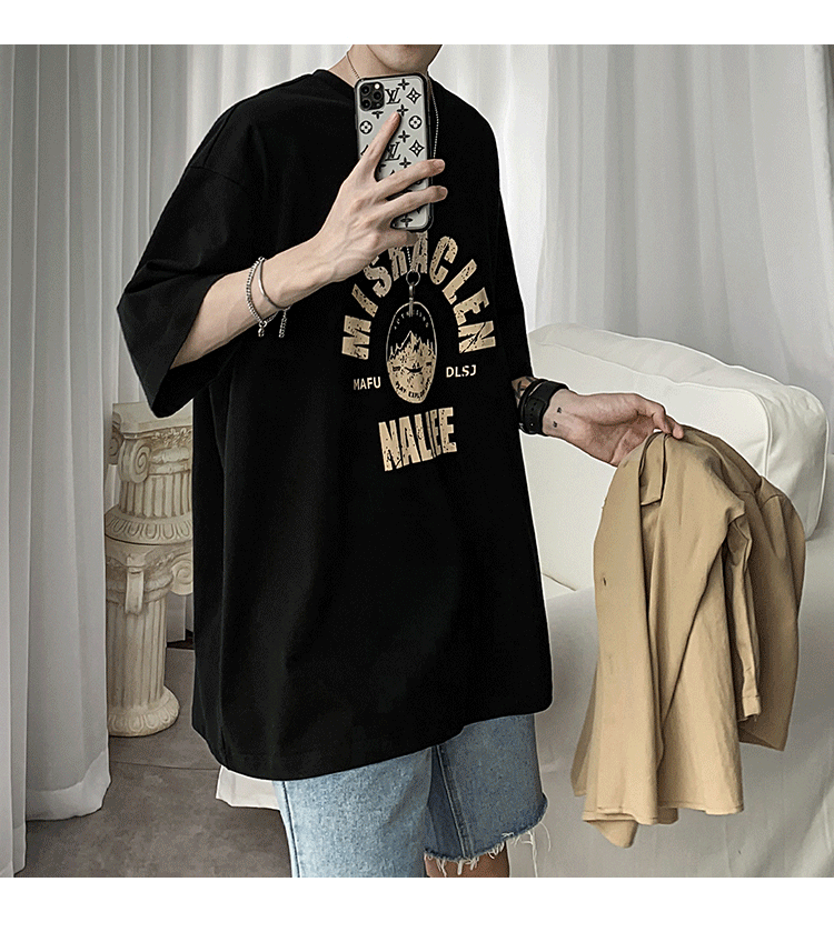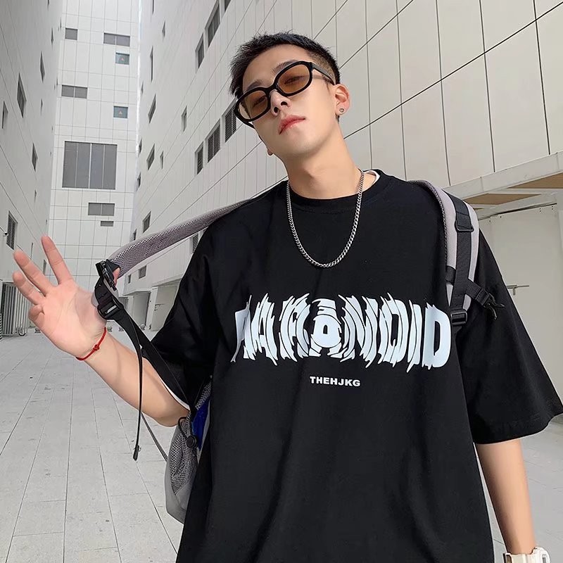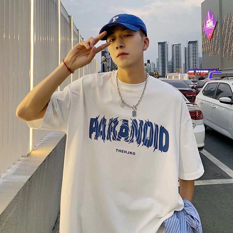 반팔 티셔츠 남성용 여름 홍콩 스타일 Ins 트렌디 브랜드 올매치 느슨한 플러스 사이즈 편지 인쇄 반팔 티셔츠 트렌디베이스 셔츠스토어 가기