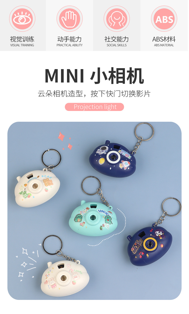 국경 만화 미니 카메라 슬라이드 라이트 프로젝터 키 체인 어린이 장난감 펜던트 선물 도매