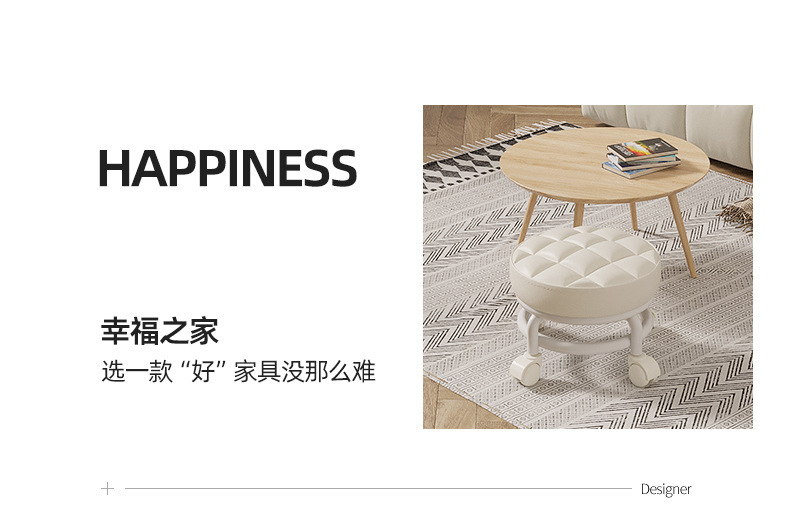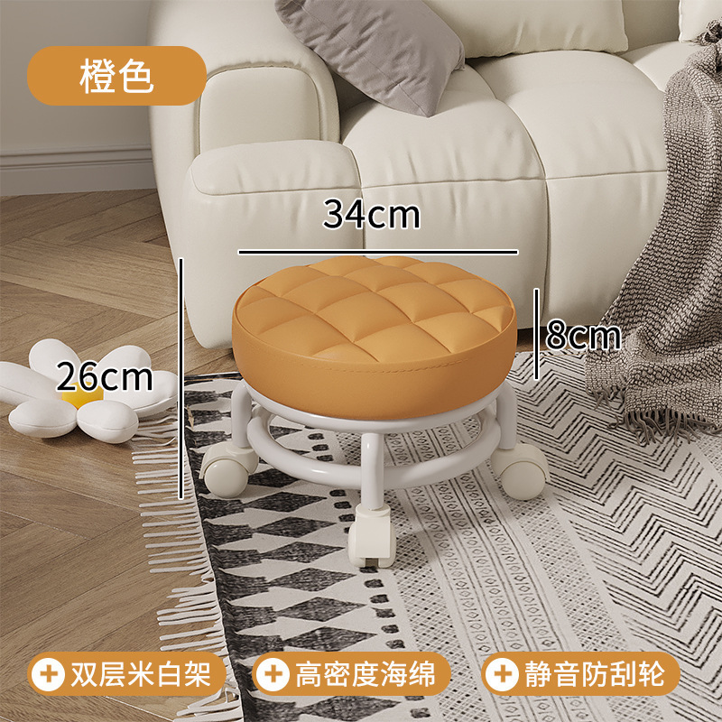 풀리 낮은 의자 어린이 의자 성인 신발 변경 의자 휴대용 유니버설 휠 아름다운 바느질 라운드 의자 소프트 스톨