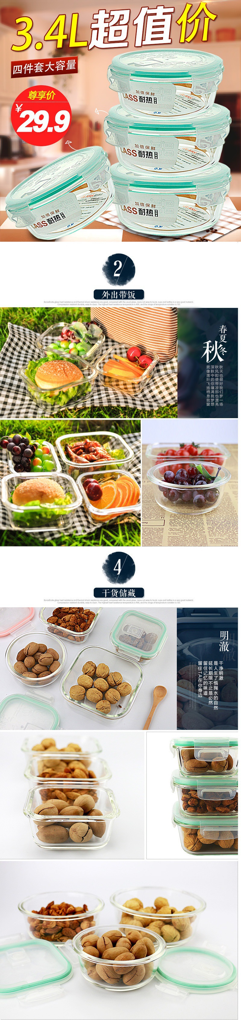 유리 도시락 상자 4 개 조각 크리스퍼 큰 내열 전자 레인지 도시락 상자 인스턴트 국수 그릇 뚜껑 위탁 제조 업체스토어 가기
