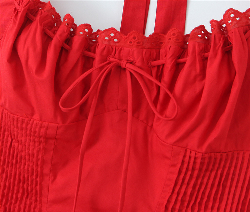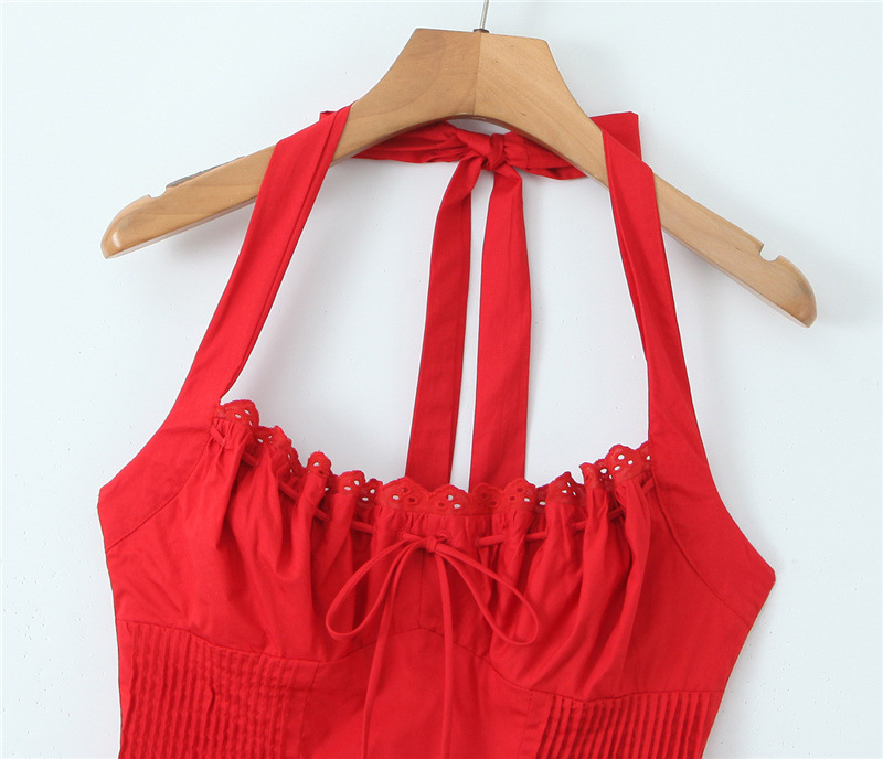 유럽과 미국 스타일의 섹시한 교수형 목 레이스 원피스 여름 레드 레이스 스티칭 압력 바 긴 교수형 목 슬링 스커트